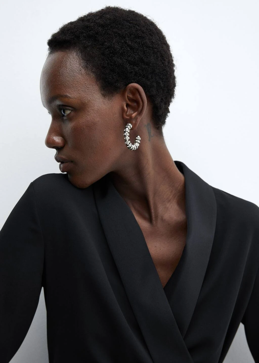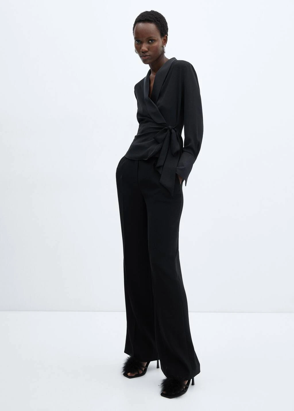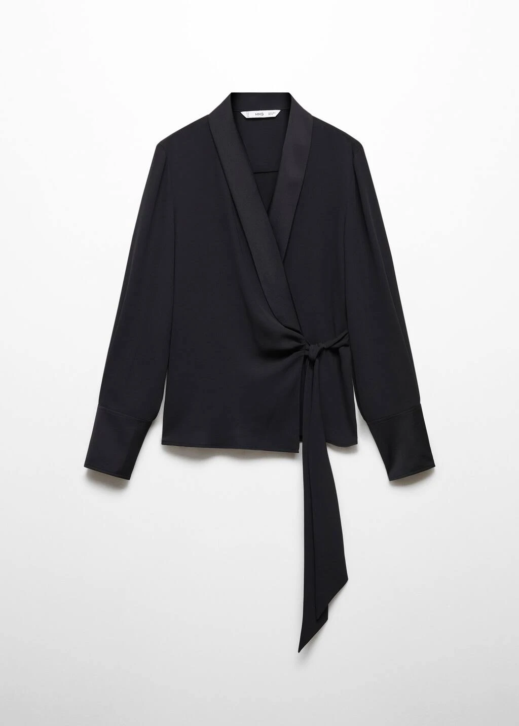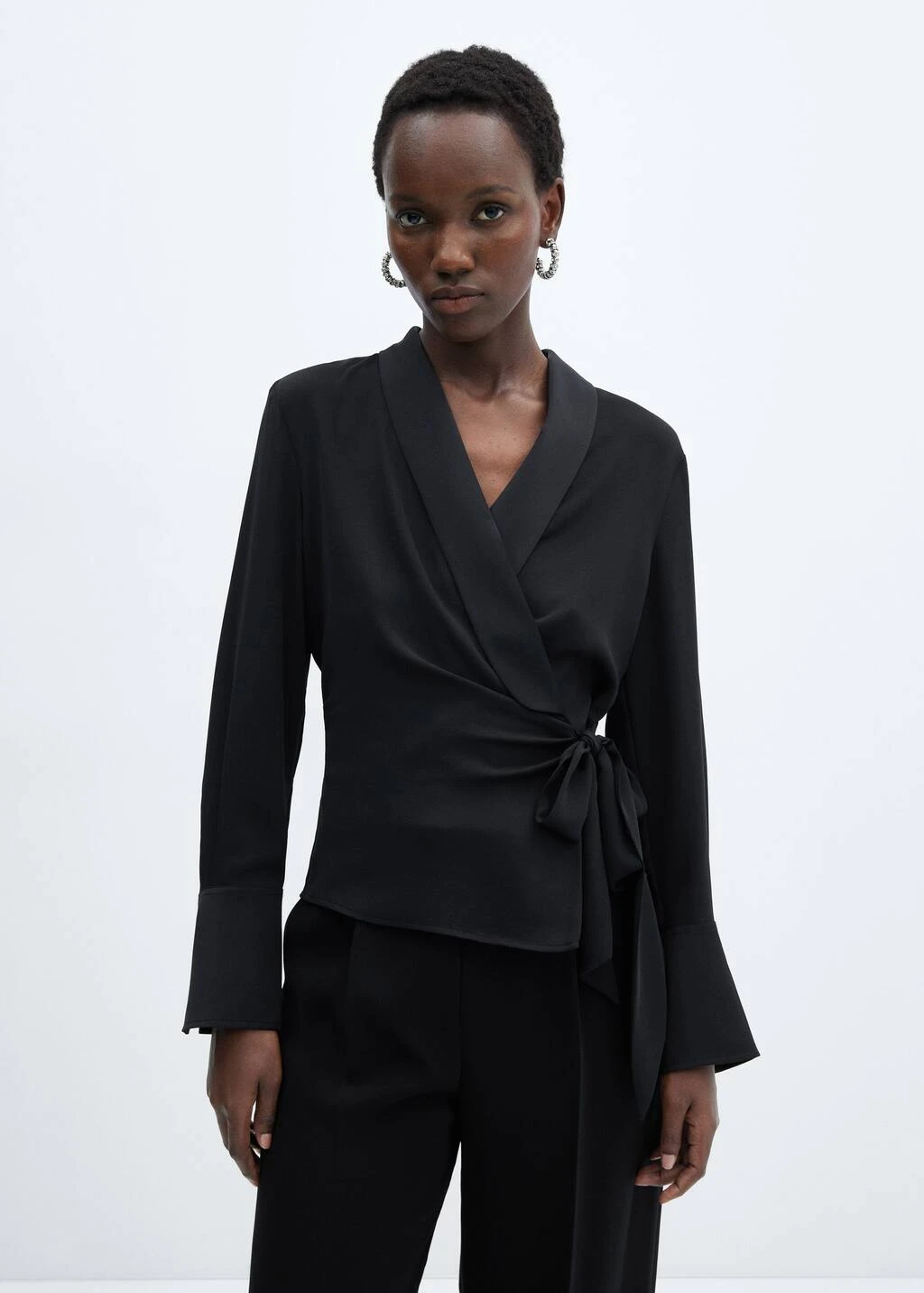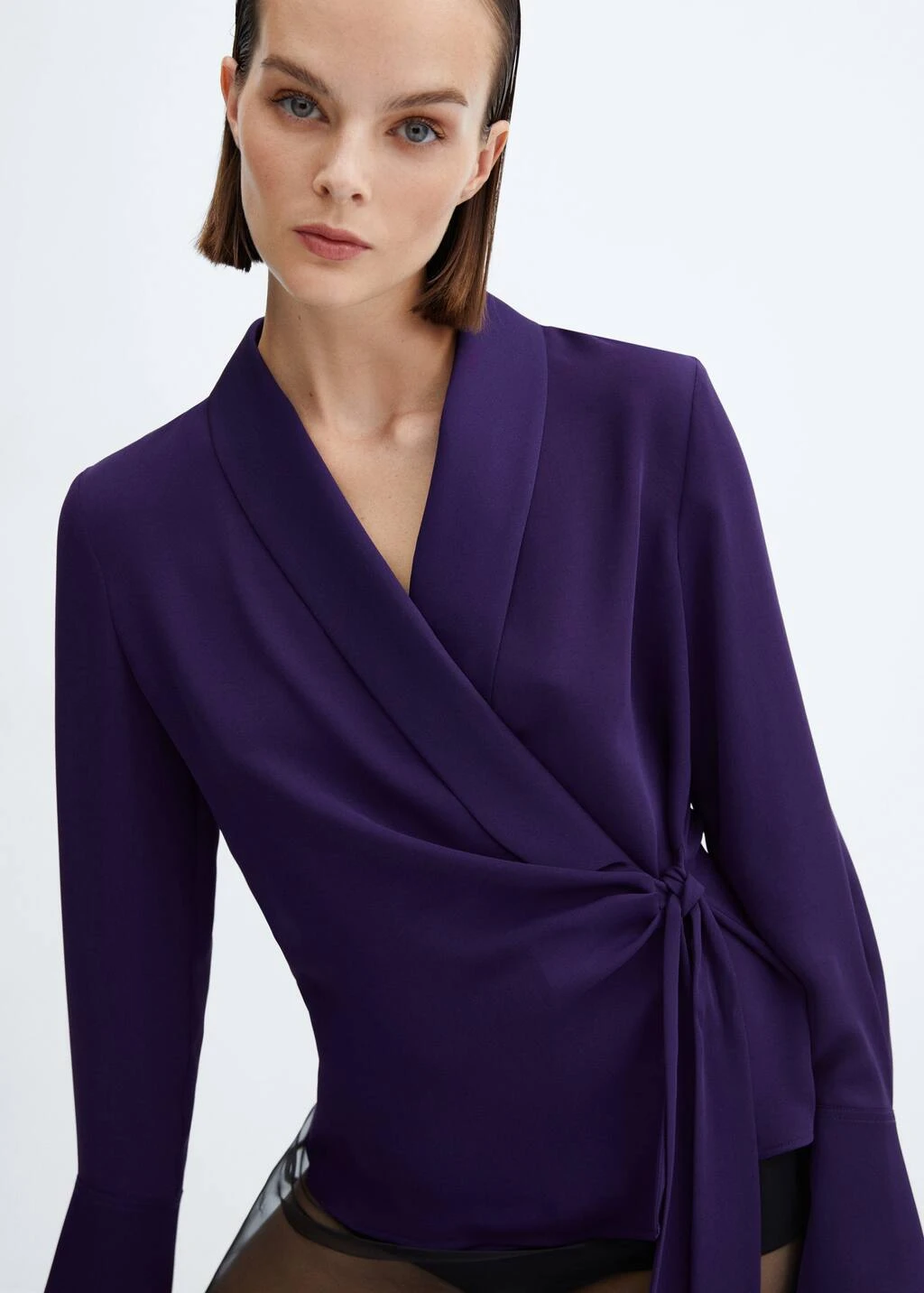 tissu fluide, croise, col en v avec rabat, manches longues avec poignets boutonnes, fermeture frontale, ruban a la taille avec fermeture a nœud, disponible plusComposition: 100% polyester. Applique: 100% polyester