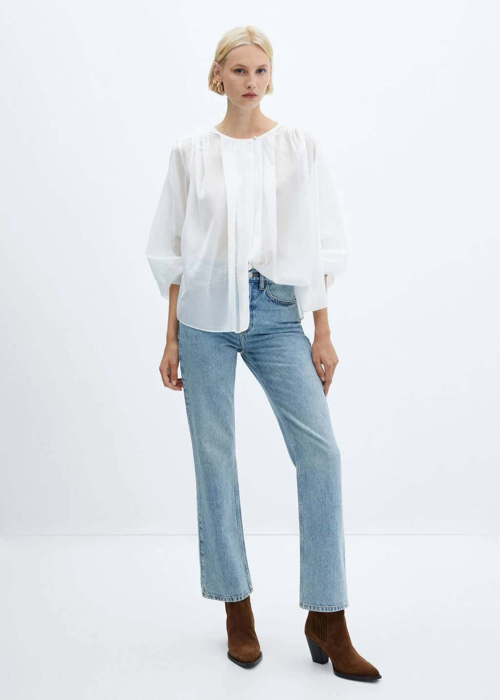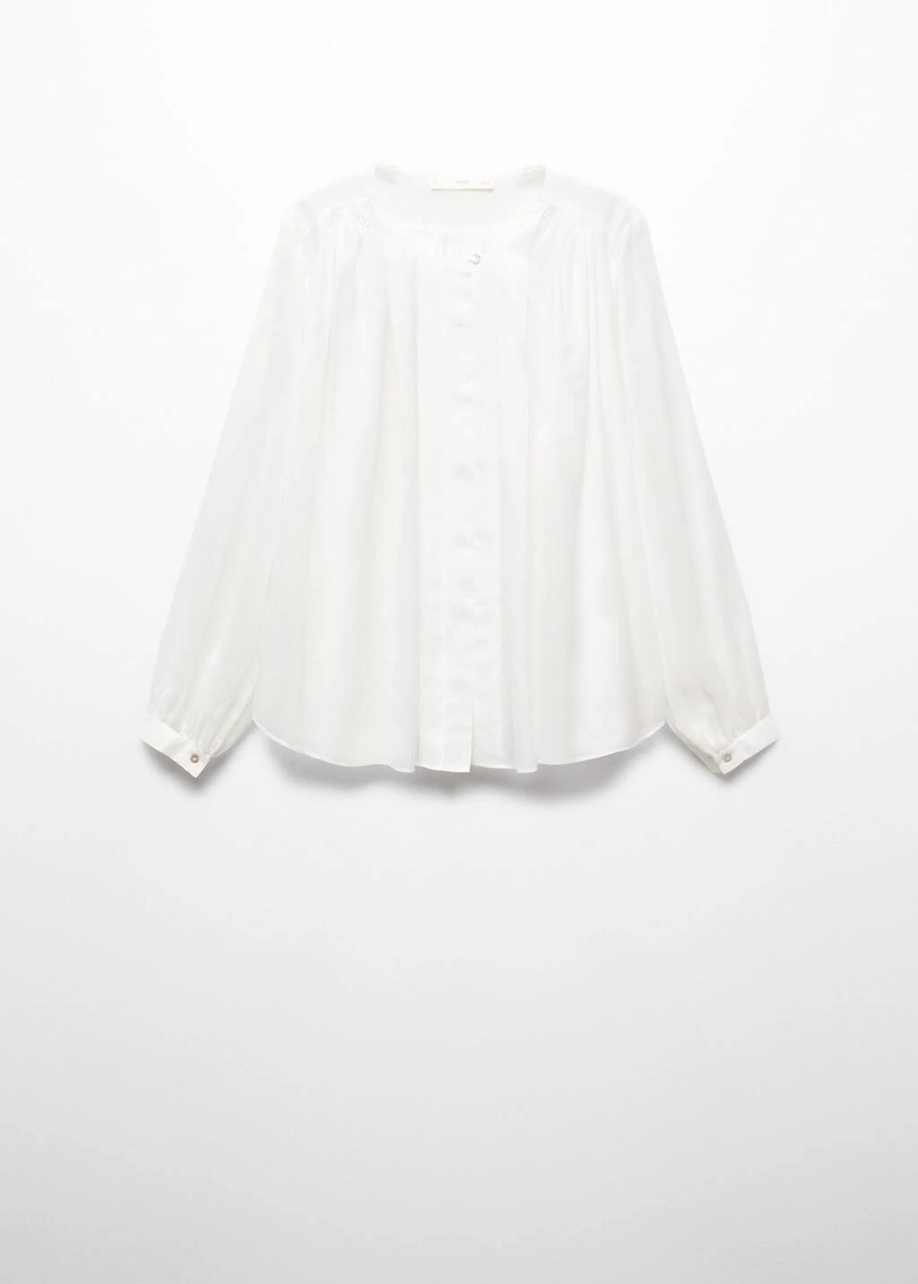 tissu de coton melange, style oversize, coupe longue, col rond, manches longues avec poignets boutonnes, manches bouffantes, fermeture a boutons sur le devant, detail fronce, sans doublure interieureComposition: 52% viscose,48% coton