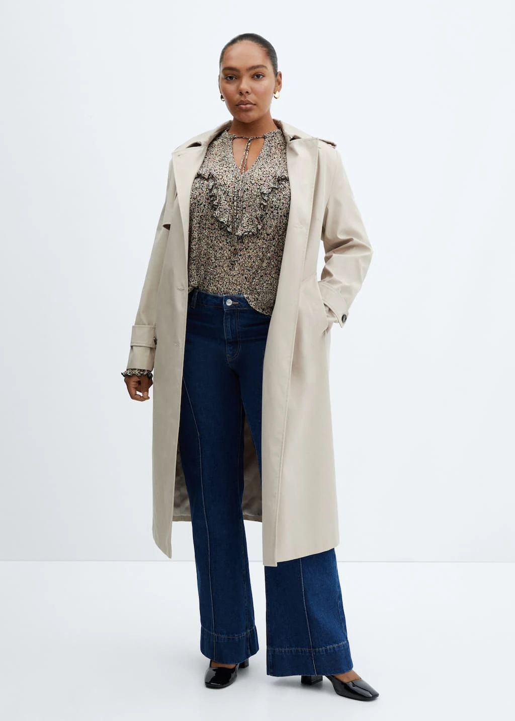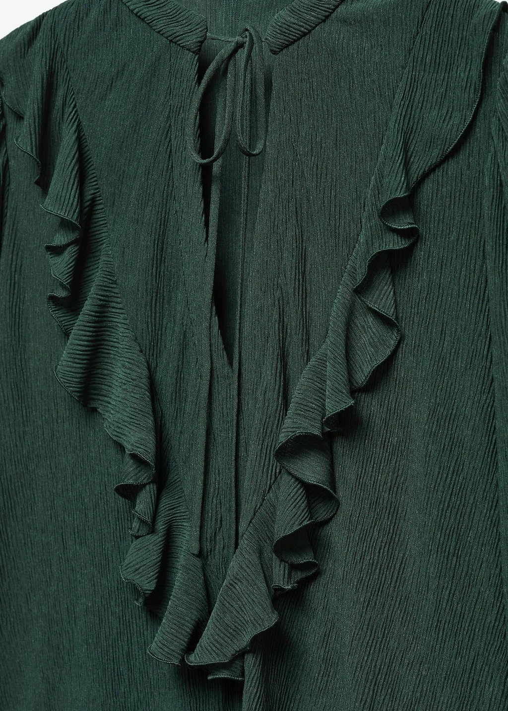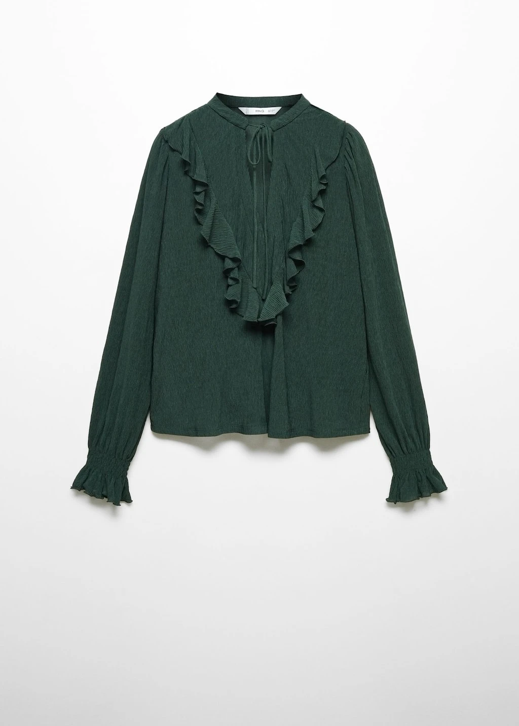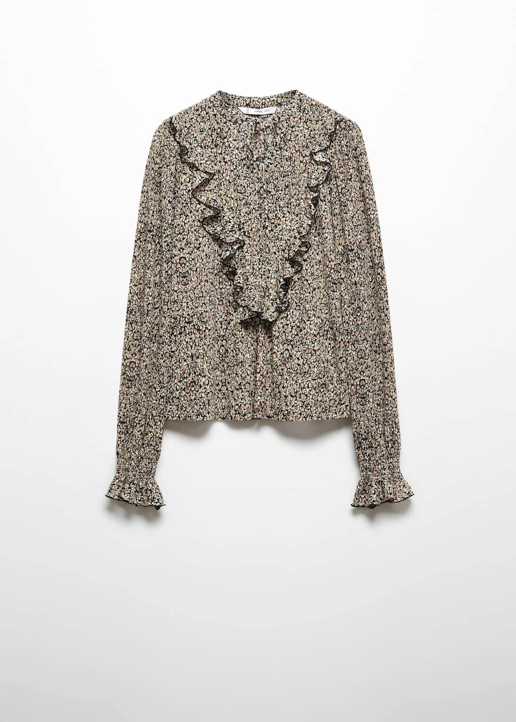 tissu fluide, coupe droite, imprime floral, col en v, manches longues avec poignets elastiques, lien a nouer autour du cou, detail de volants sur le col, disponible plusComposition: 100% polyester