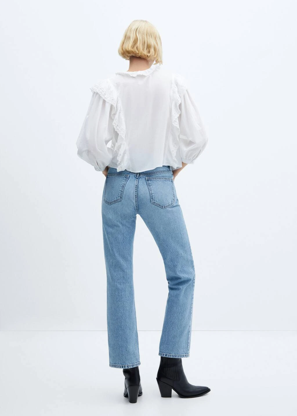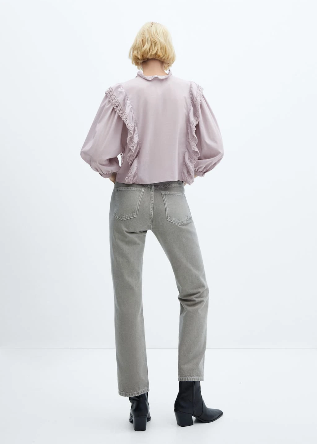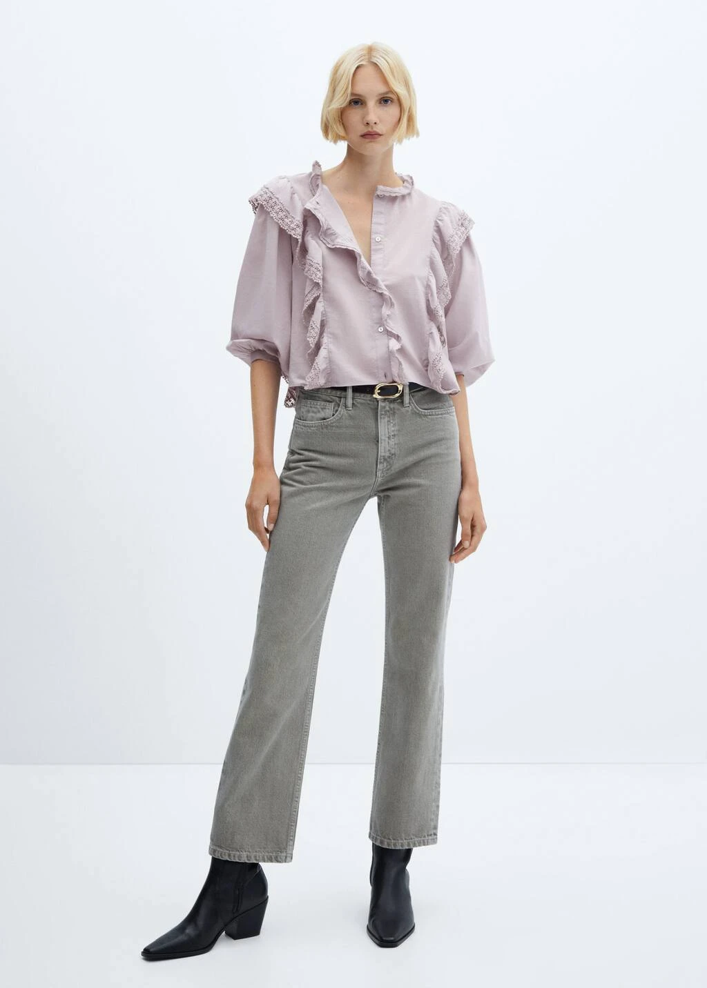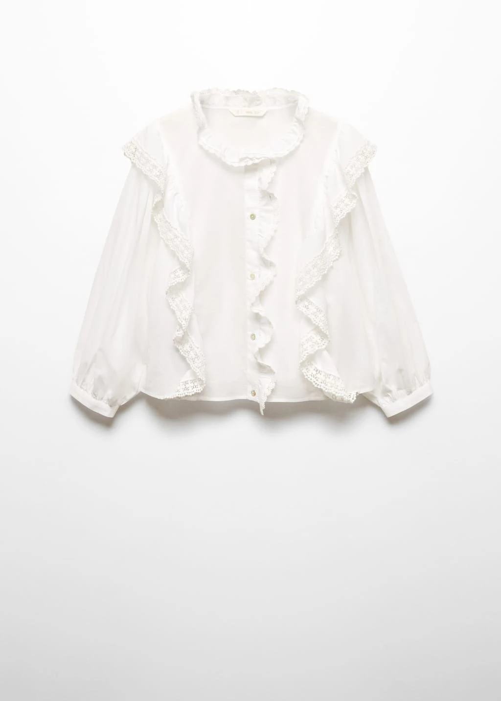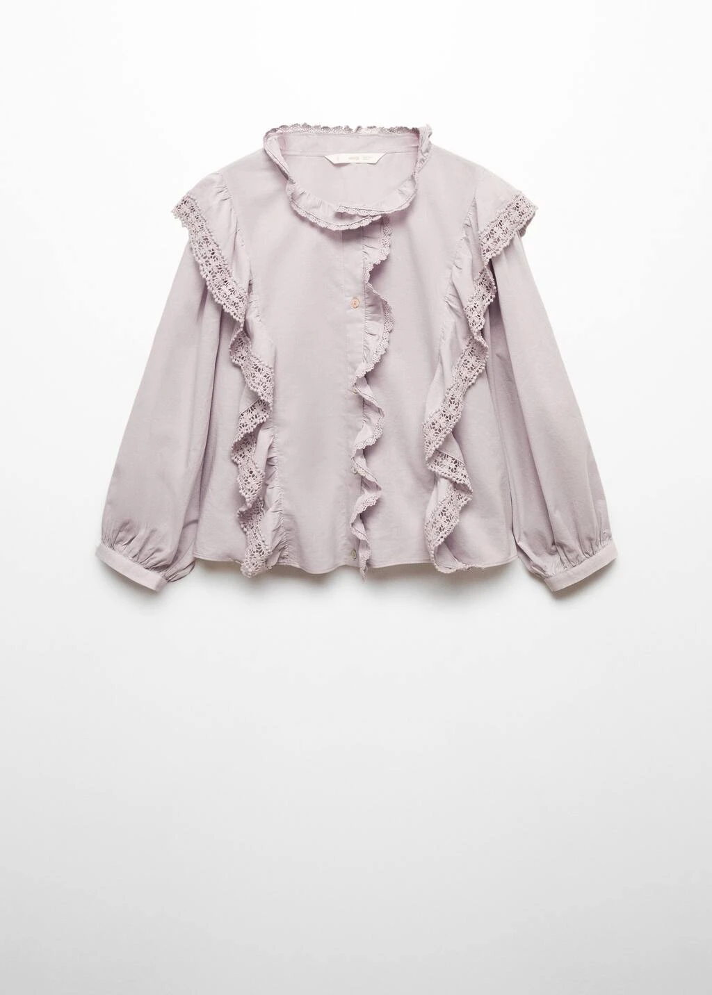 tissu 100 % coton, coupe courte, coupe large, col rond, manches longues avec poignets boutonnes, manches bouffantes, details volantes, detail dentelle, fermeture a boutons sur le devant, sans doublure interieureComposition: 100% coton. Dentelle: 100% coton