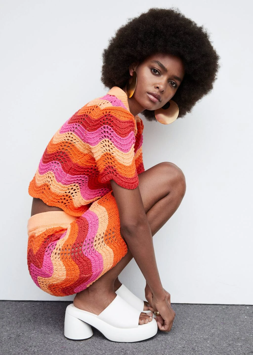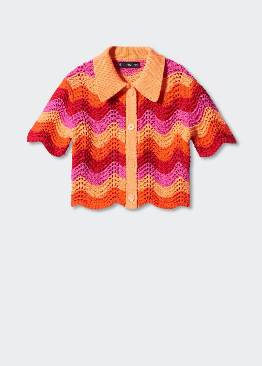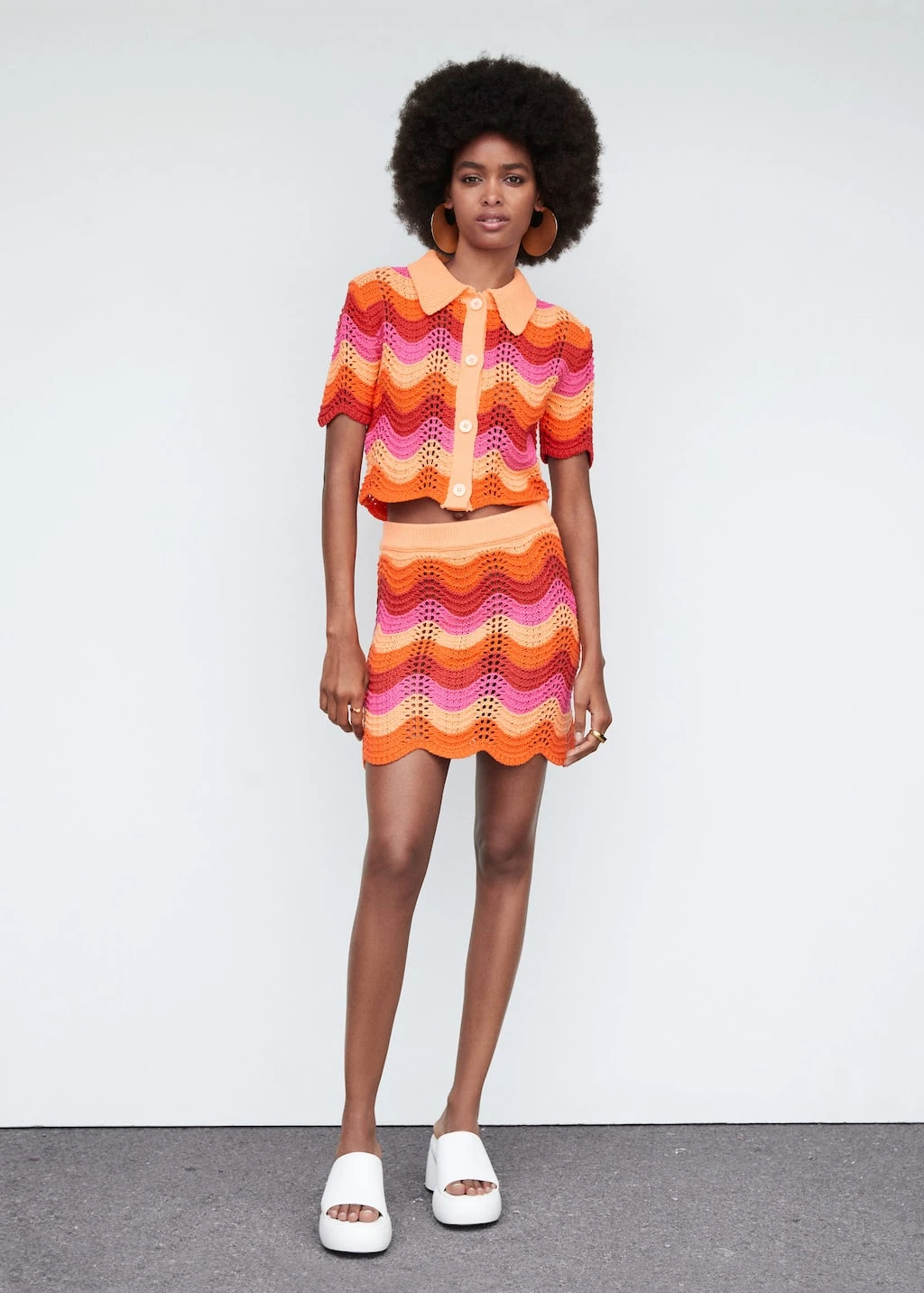 tissu ajoure, bicolore, fait a la main, col polo, coupe droite, coupe courte, manches courtes, fermeture a boutons sur le devant, total lookComposition: 72% coton,28% polyester