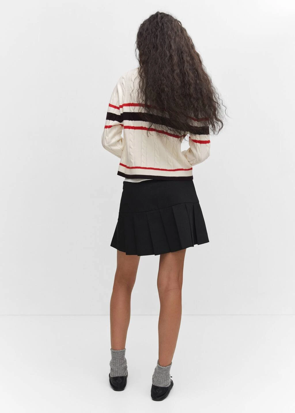 tissu en grosse maille, tissu maille torsadee, droit, motif raye, col en v, manches longues, fermeture boutonnee sur le devant, total lookComposition: 50% viscose,28% polyester,22% polyamide