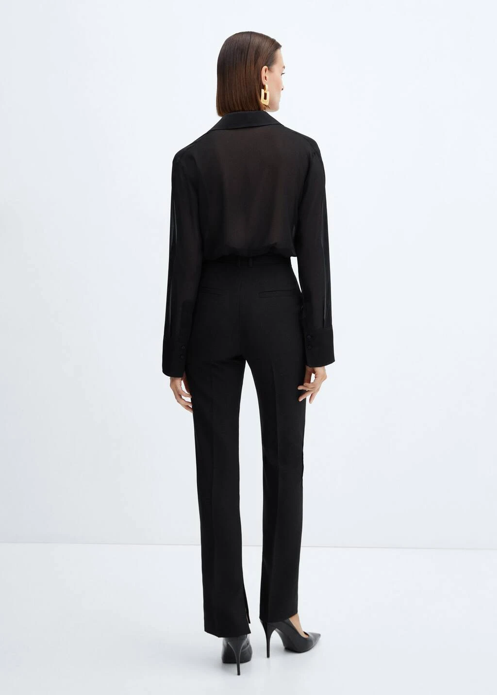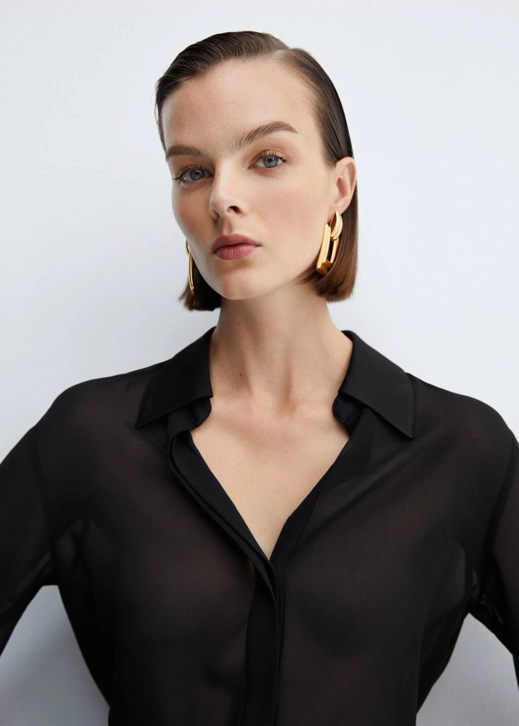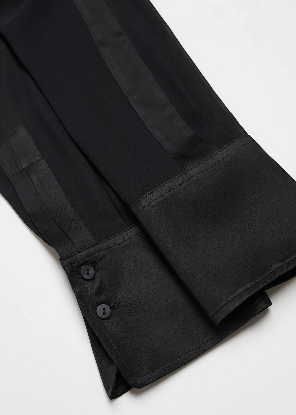 tissu fluide, droit, col chemise, manches longues avec poignets boutonnes, fermeture a boutons dissimulee sur le devant, bords satinesComposition: 100% polyester. Lisiere: 100% viscose