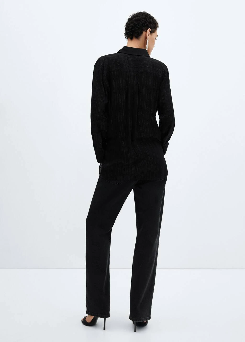 tissu fluide, coupe longue, coupe droite, col chemise, manches longues avec poignets boutonnes, fermeture a boutons dissimulee sur le devant, detail de fil metallise, bords satines, disponible plus, collection fetes et ceremonies.Composition: 99% viscose,1% polyester avec revêtement de cuivre. Applique: 100% viscose