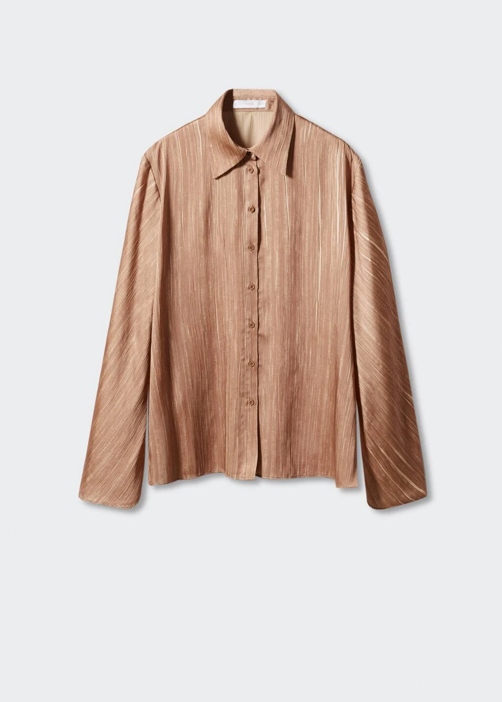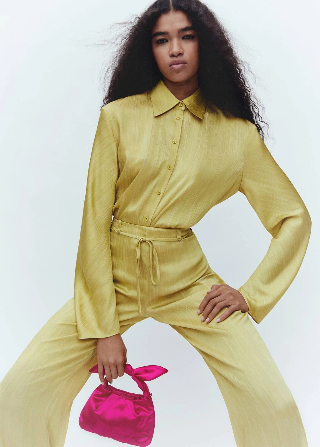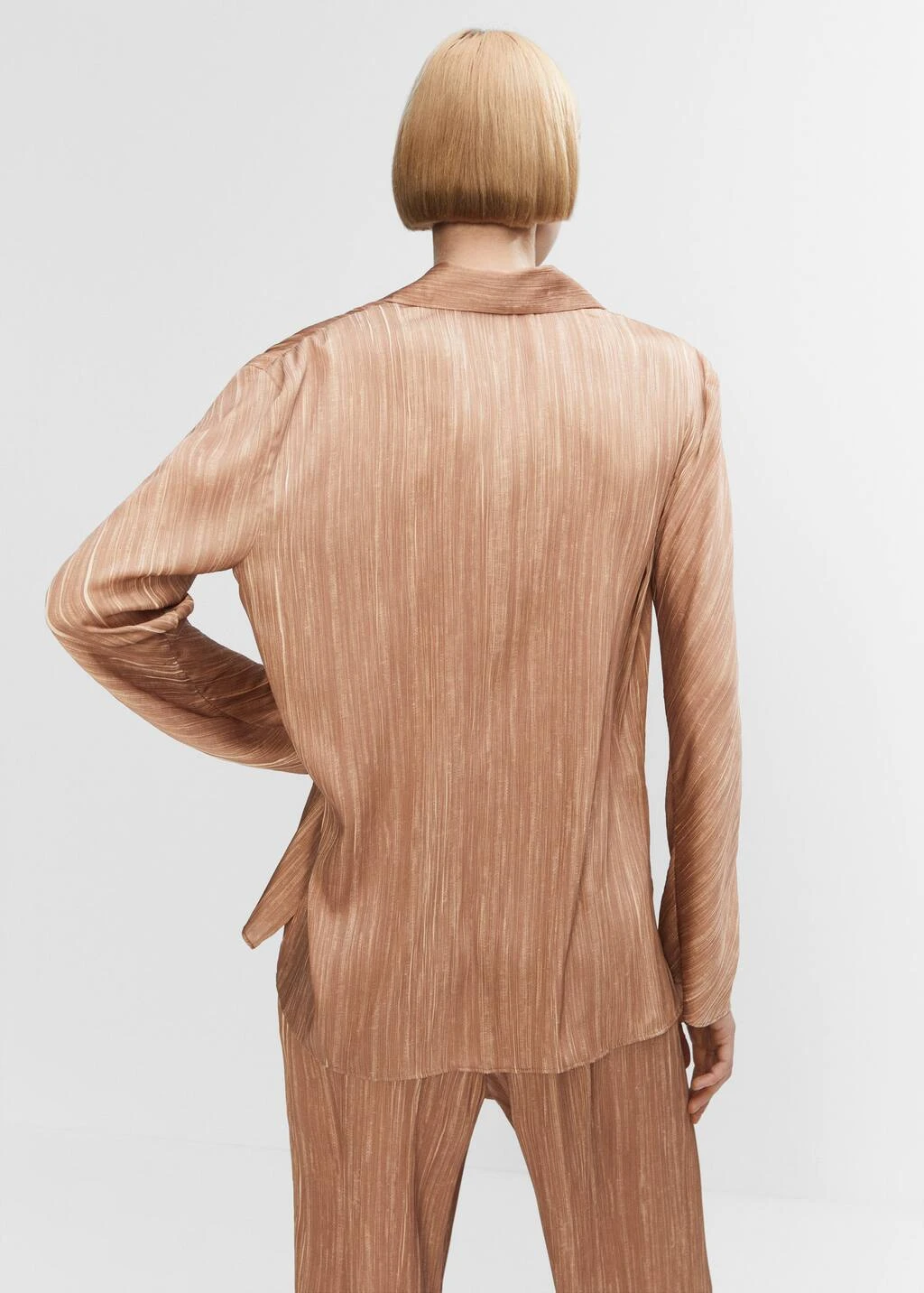 tissu satine, tissu fluide, design plisse, coupe droite, col chemise, manches longues, fermeture a bouton sur le devant, total lookComposition: 100% polyester
