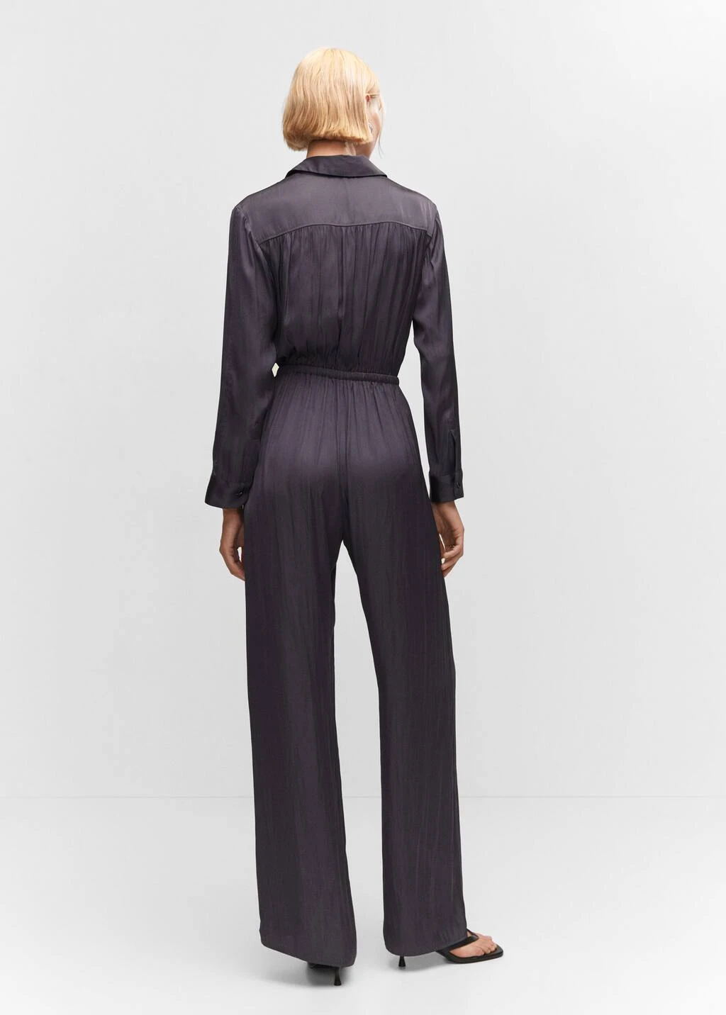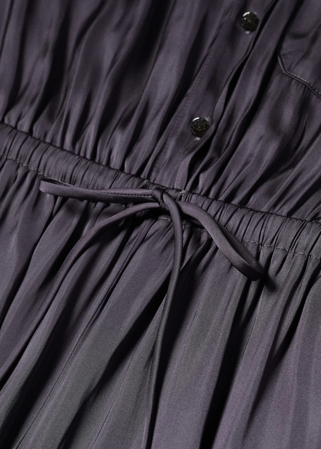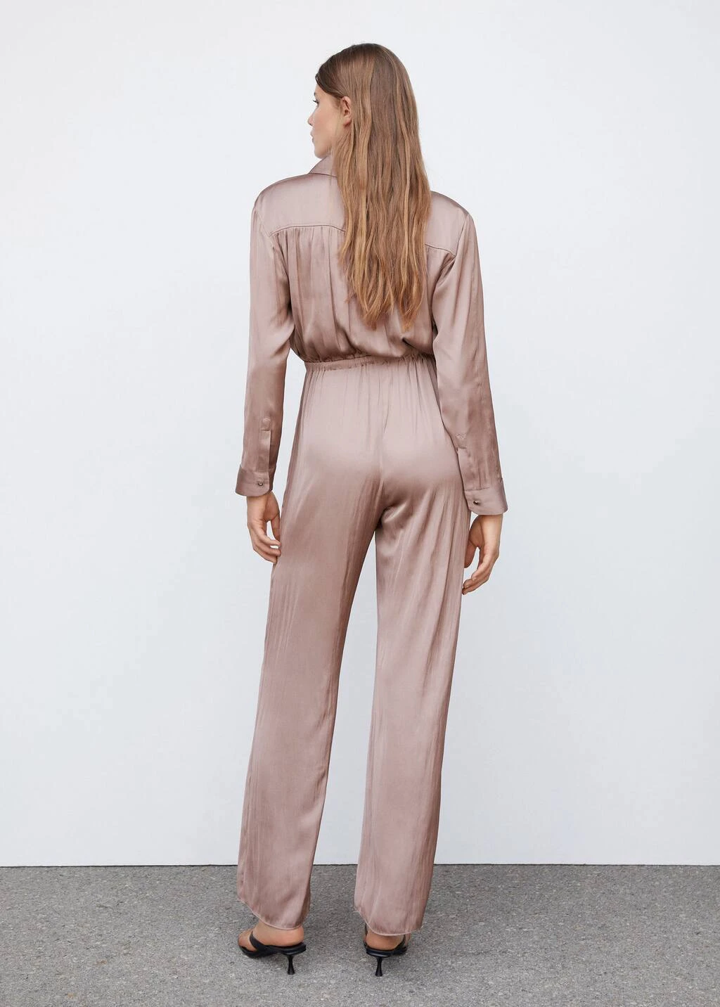 tissu satine, tissu fluide, style chemisier, coupe longue, coupe wideleg, coupe cintree, col chemise, manches longues avec poignets boutonnes, ceinture a nouer a la taille, fermeture boutonnee sur le devant, poche plaquee sur le devantComposition: 100% polyester. Cordon: 100% polyester