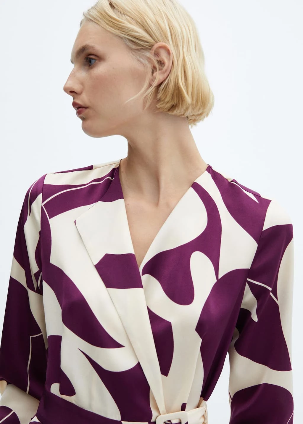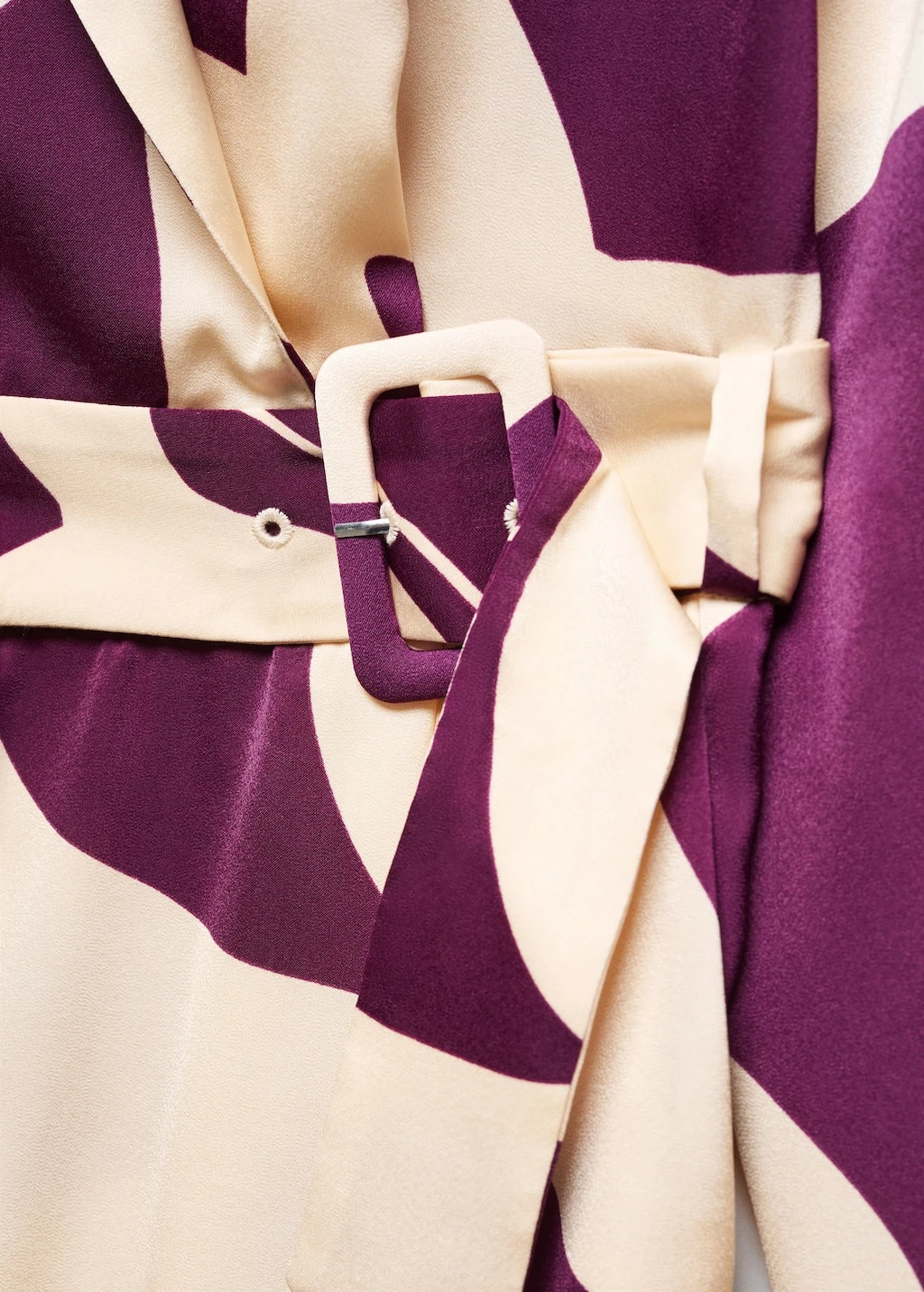 tissu fluide, croise, droit, coupe longue, imprime, col en v avec rabat, manches longues boutonnees, ceinture amovible, doublureComposition: 100% polyester. Doublure: 95% polyester,5% elasthanne. Boucle: 90% fer,10% polyester. Ceinture: 100% polyester