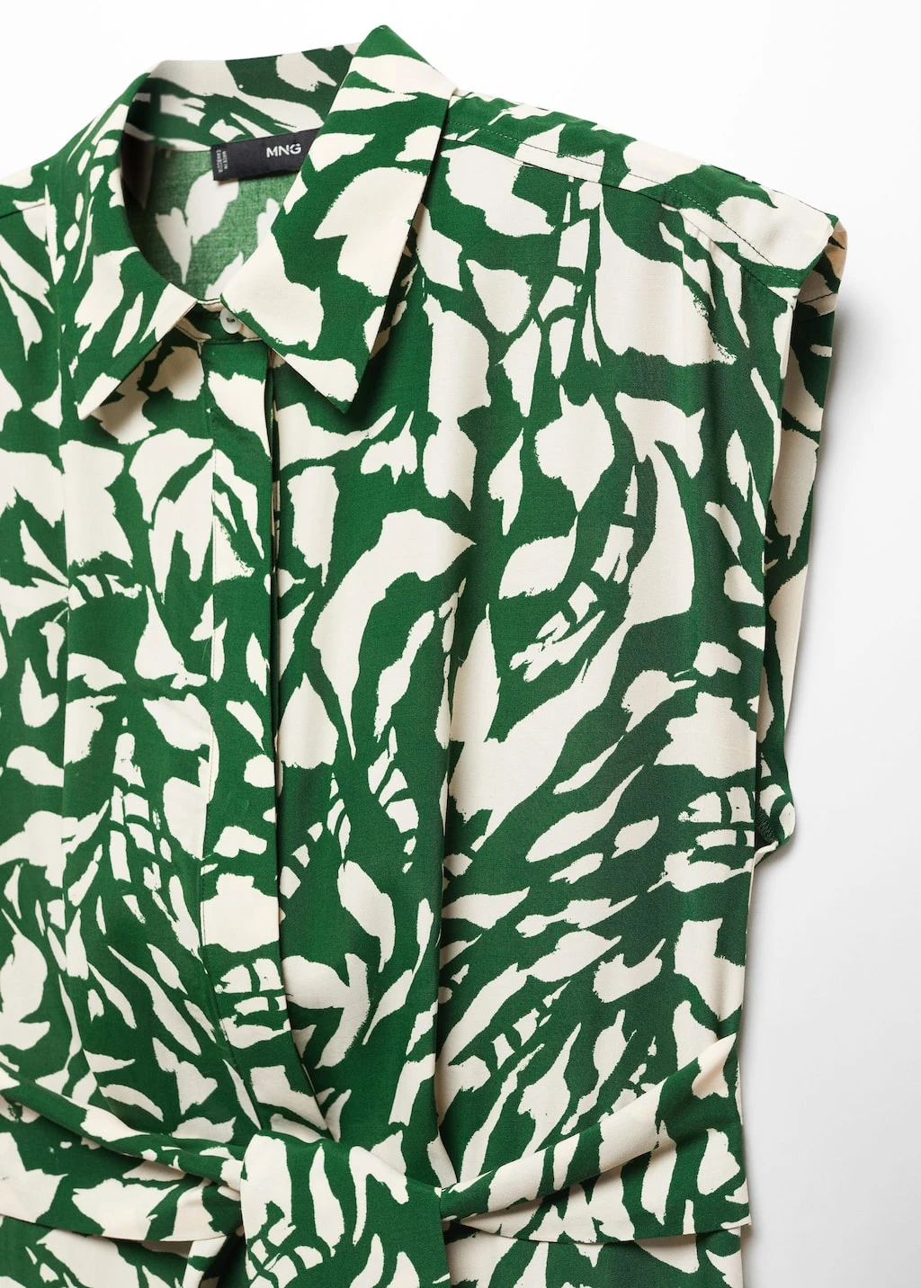 tissu fluide, coupe droite, coupe longue, imprime, col chemise, sans manches, fermeture boutonnee sur le devant, nœud amovible a la tailleComposition: 100% viscose