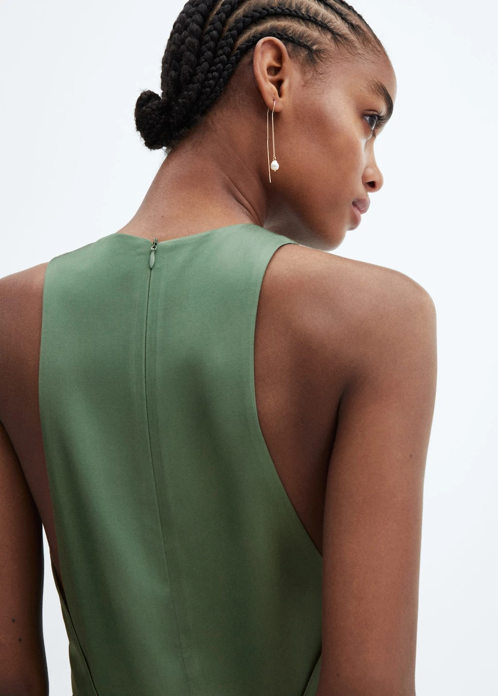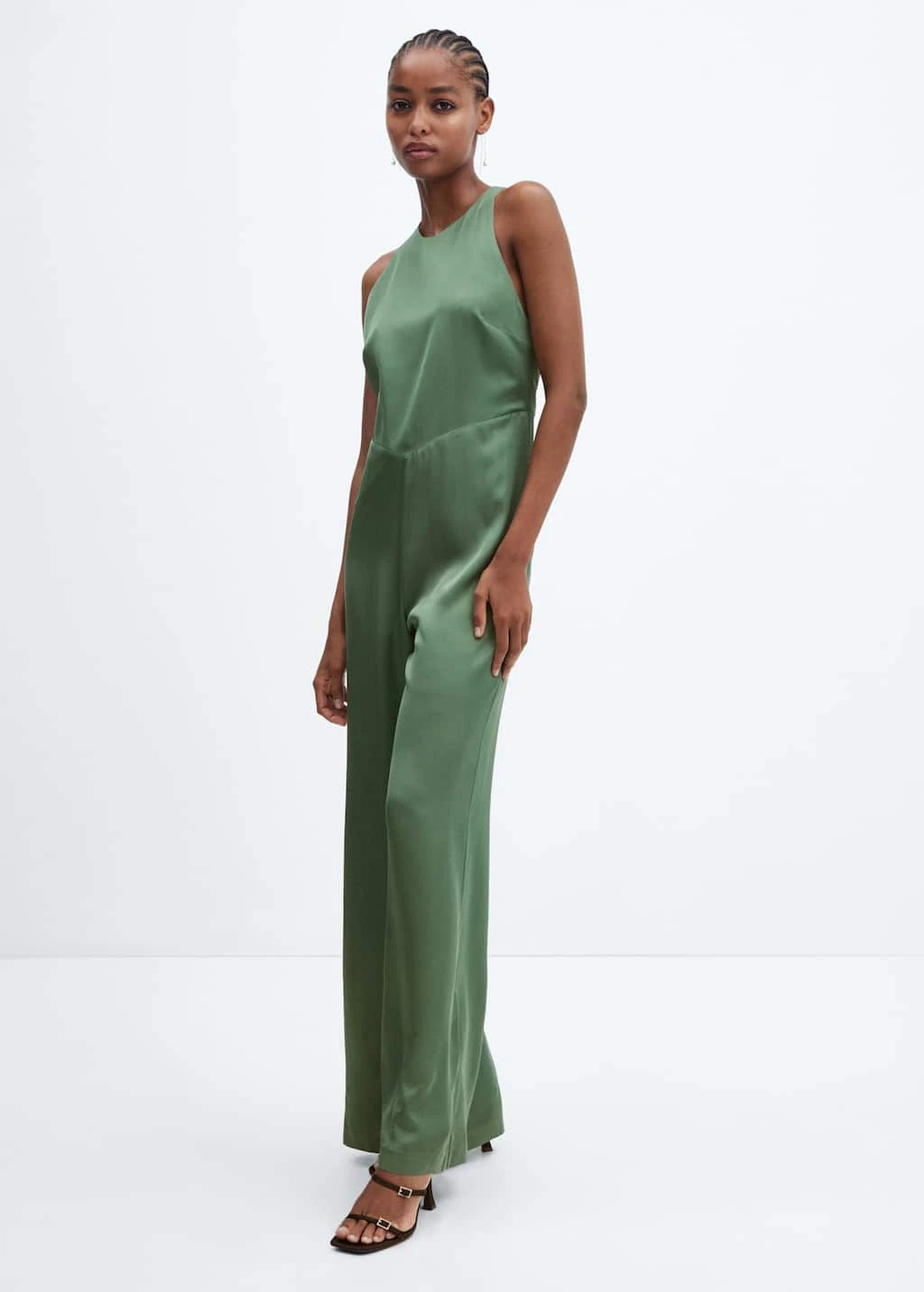 tissu fluide, coupe longue, coupe wideleg, effet satine, sans manches, emmanchures americaines, fermeture eclair a l’arriere, doublureComposition: 100% viscose. Doublure: 100% polyester