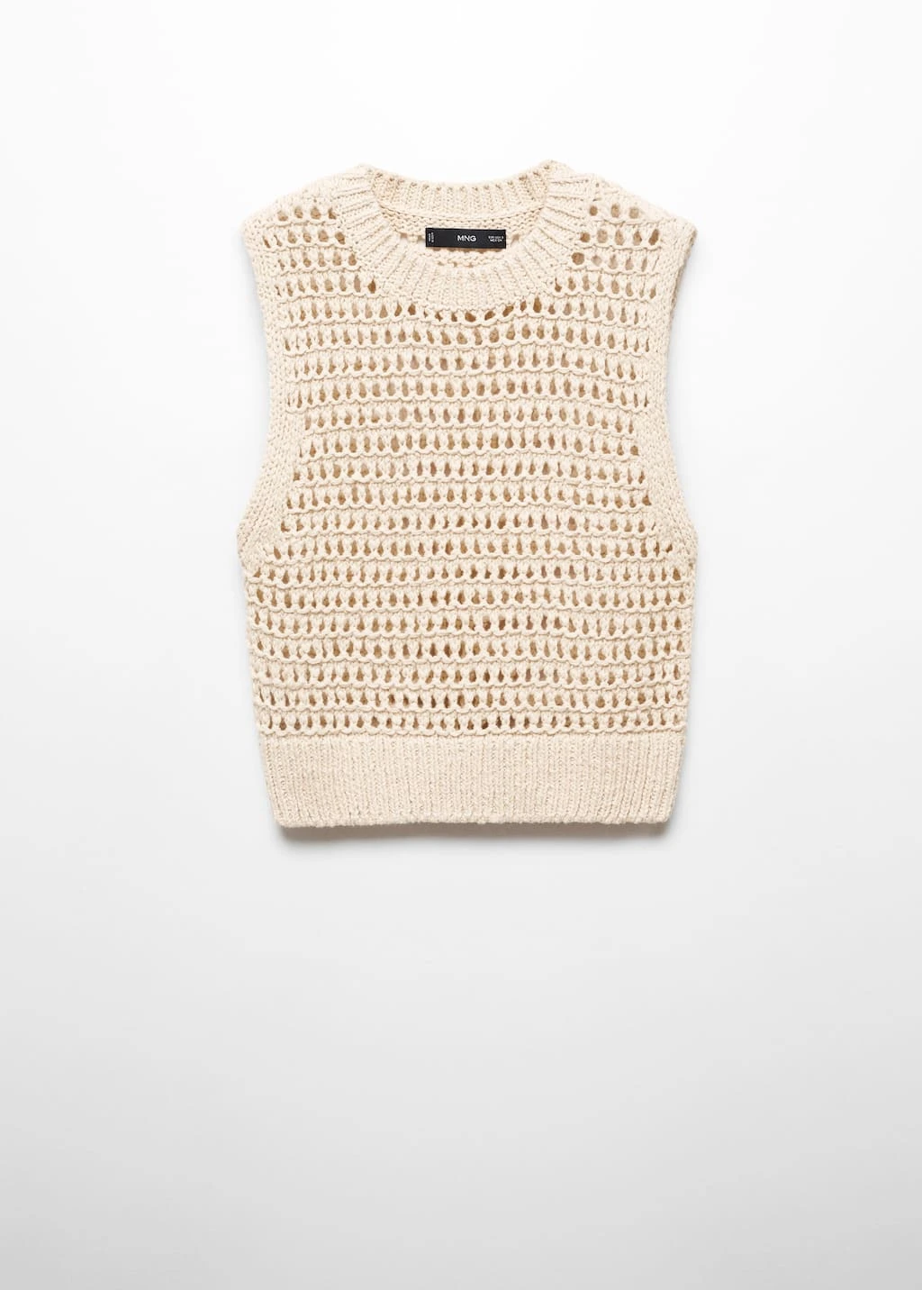 tissu en crochet, tissu en grosse maille, coupe droite, style crop, col rond, sans manches, sans fermeture, style bohoComposition: 100% coton