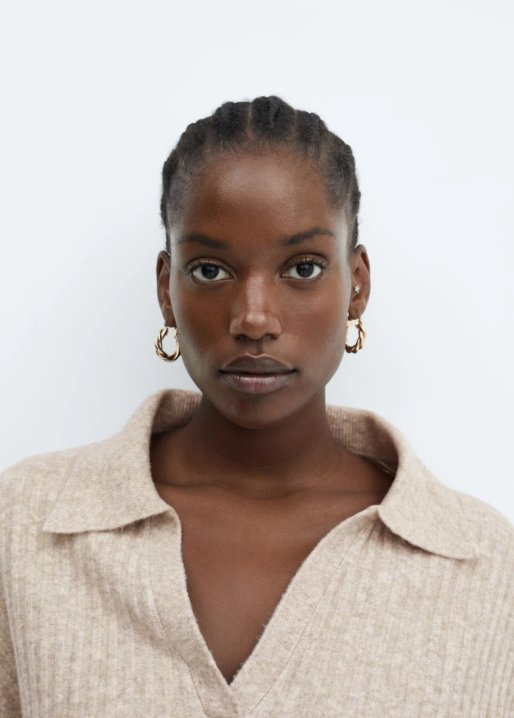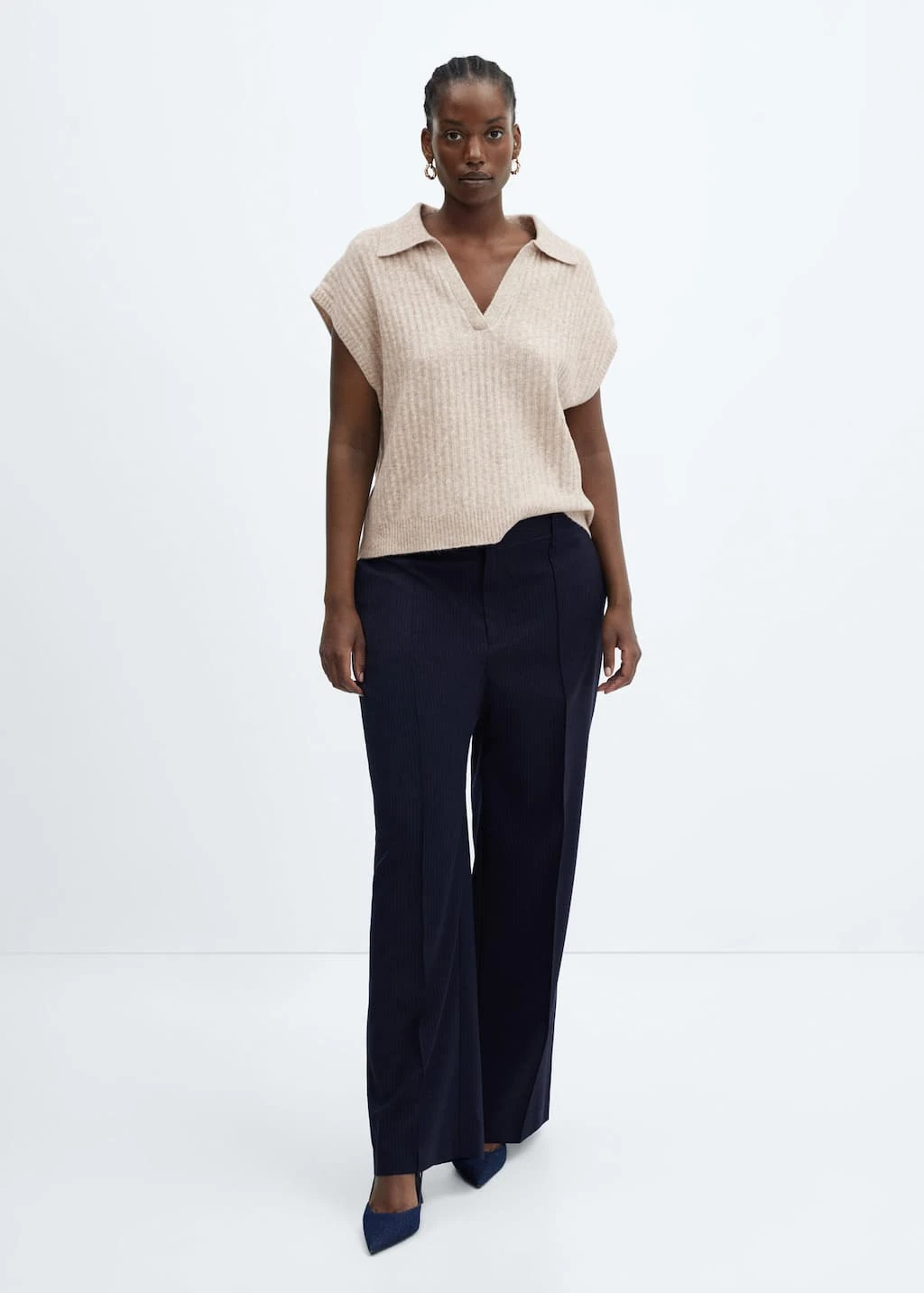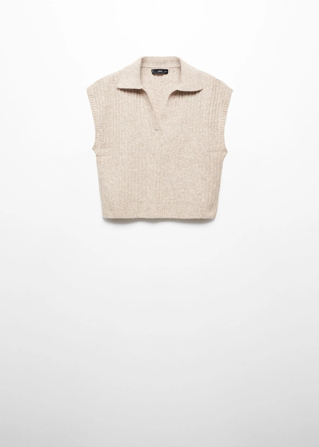 tissu de laine melange, maille moyenne, cotele, col polo, sans manches, sans fermeture, disponible plusComposition: 47% polyester,46% acrylique,5% laine,2% elasthanne
