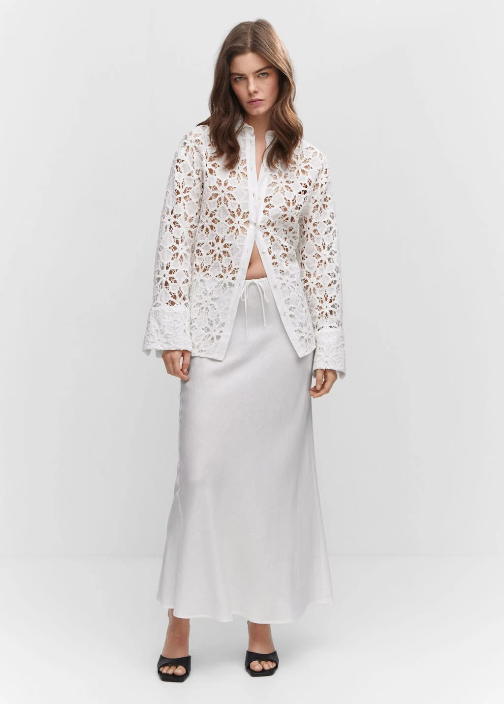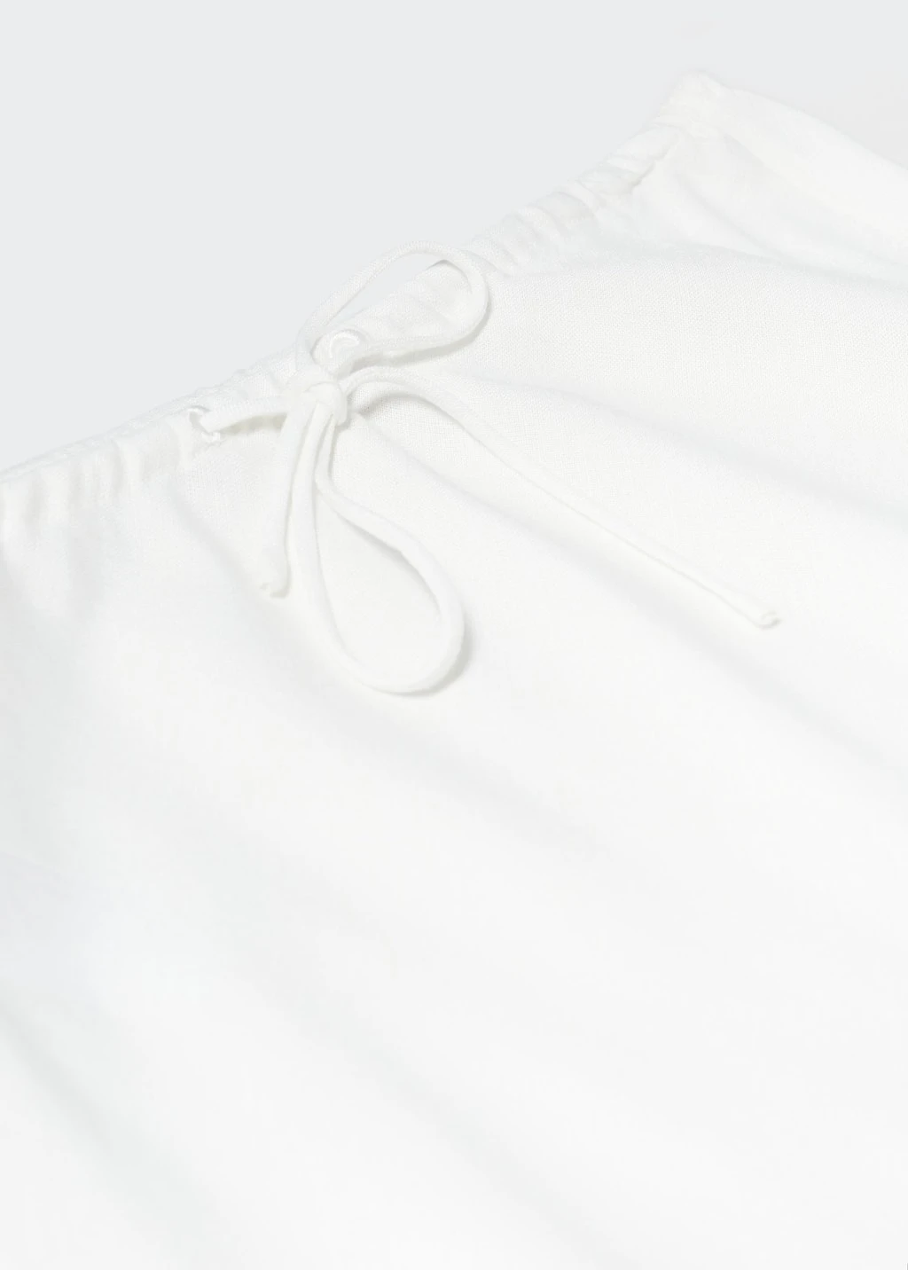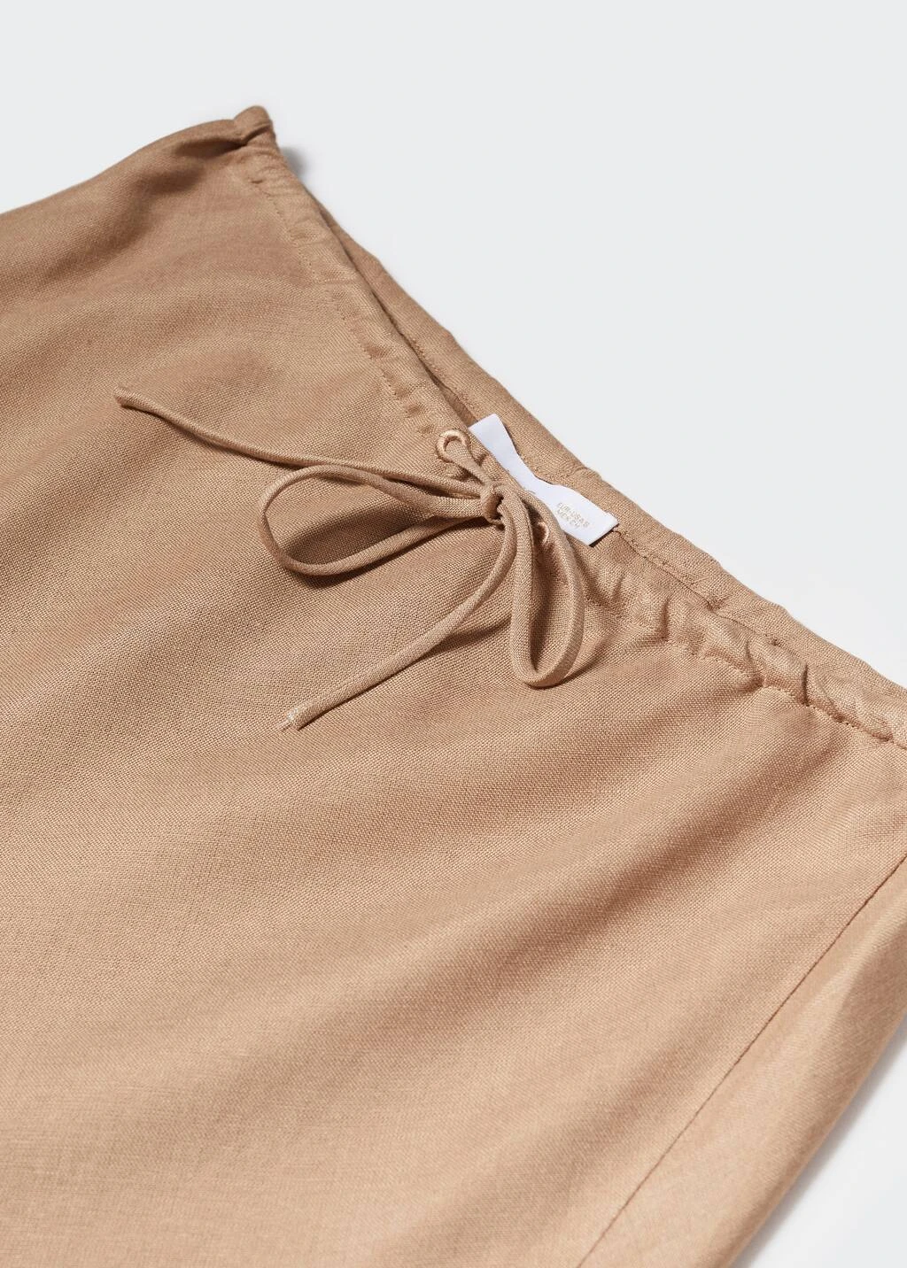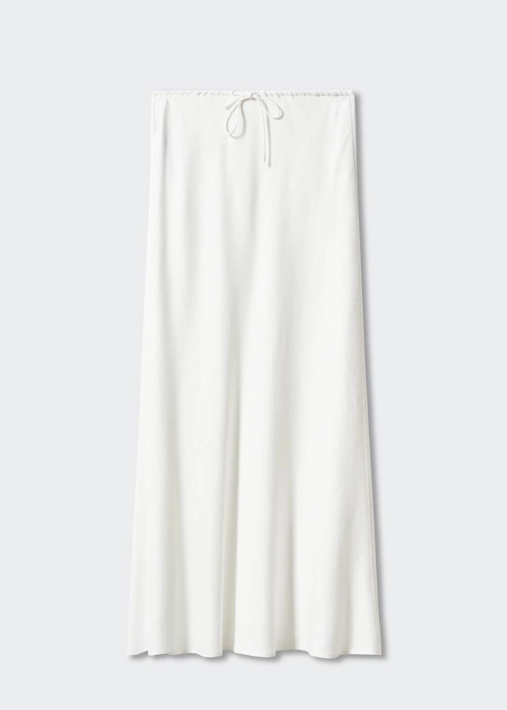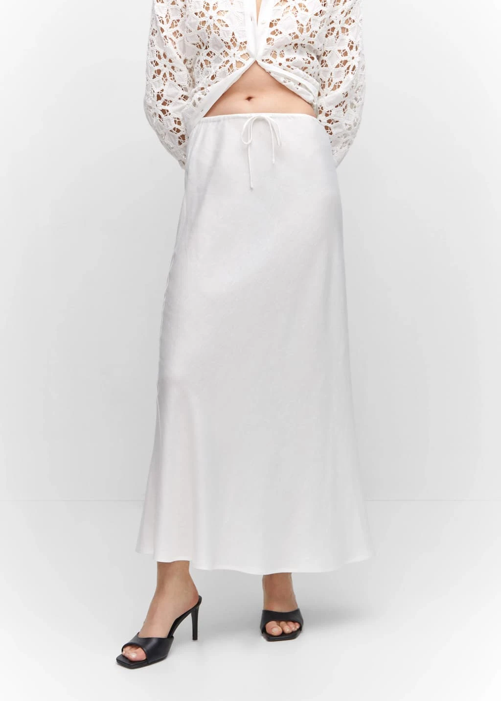 coupe midi, tissu en lin melange, elastique pour cheveux, evase, coupe longue, taille haute, taille elastiquee, fermeture a nouerComposition: 70% viscose,30% lin