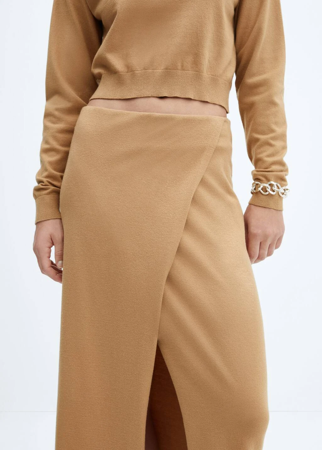 tissu en maille fine, croise, coupe droite, coupe midi, taille haute, taille elastiquee, sans fermetureComposition: 52% viscose,28% polyester,20% polyamide