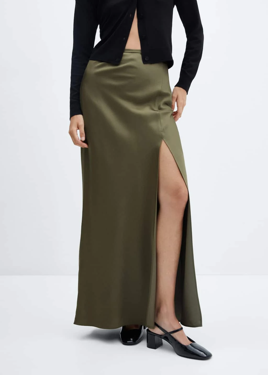 tissu fluide, coupe maxi, taille normale, effet satine, sans fermeture, taille elastiquee, fente laterale, disponible plusComposition: 52% polyester,48% viscose