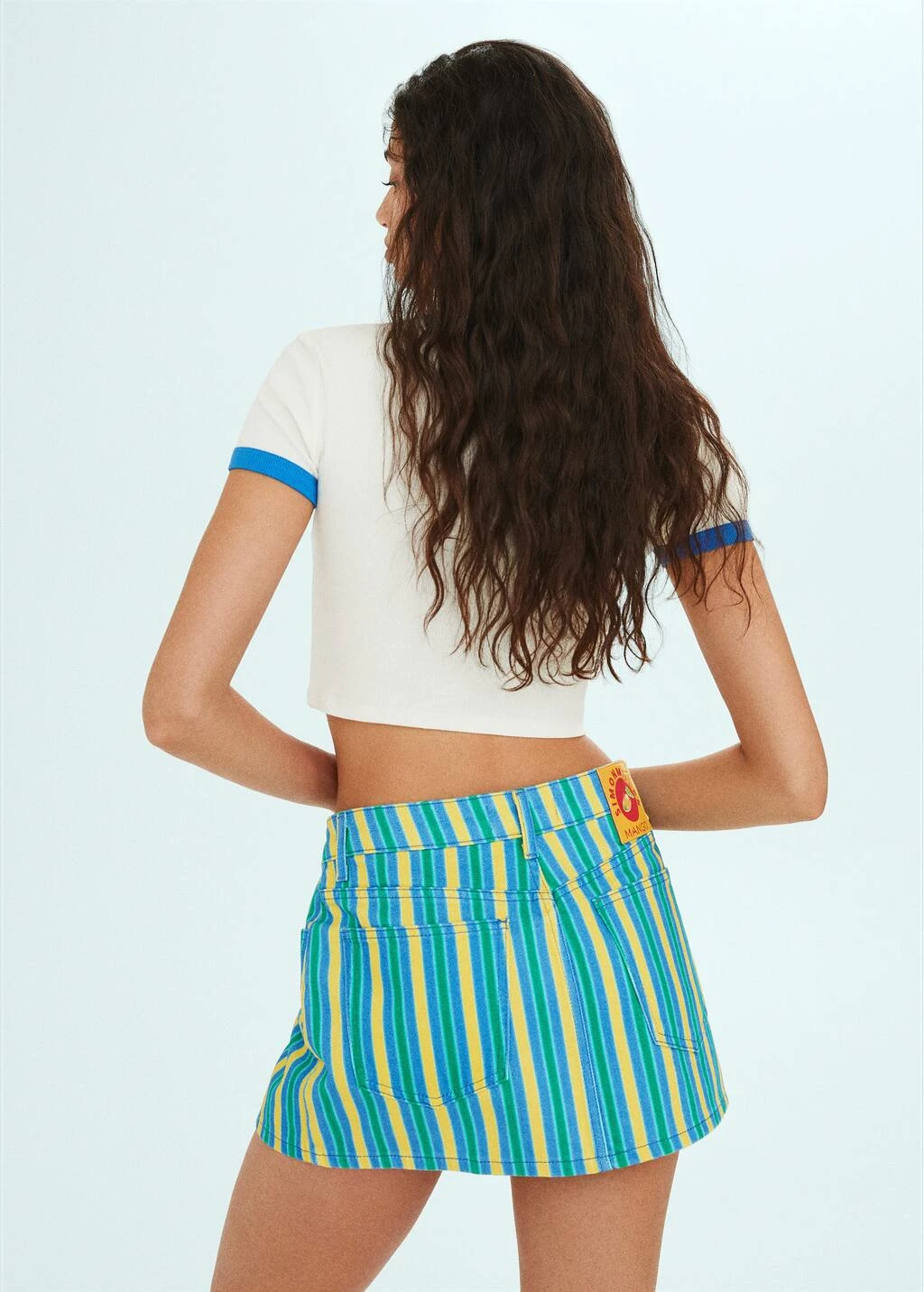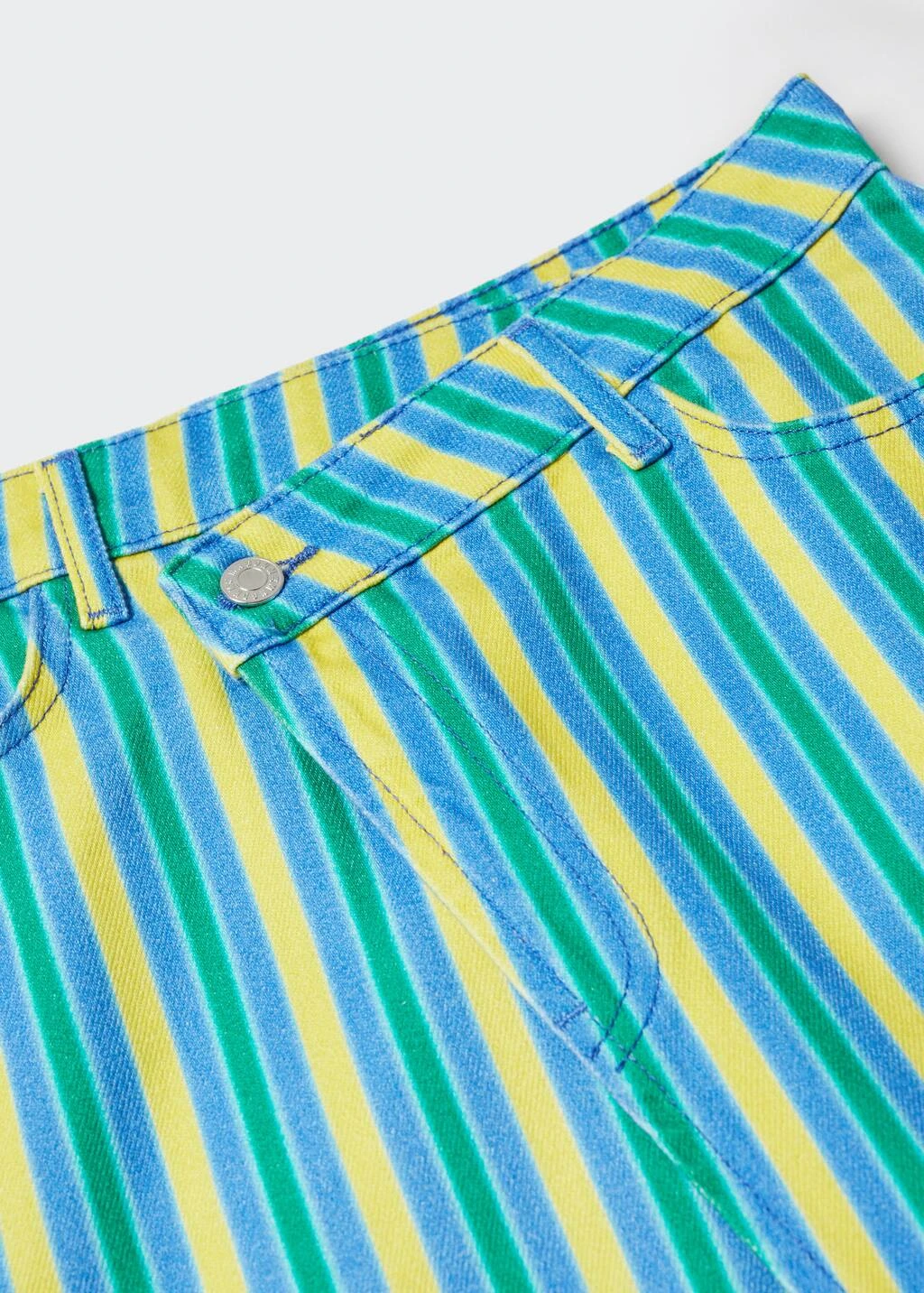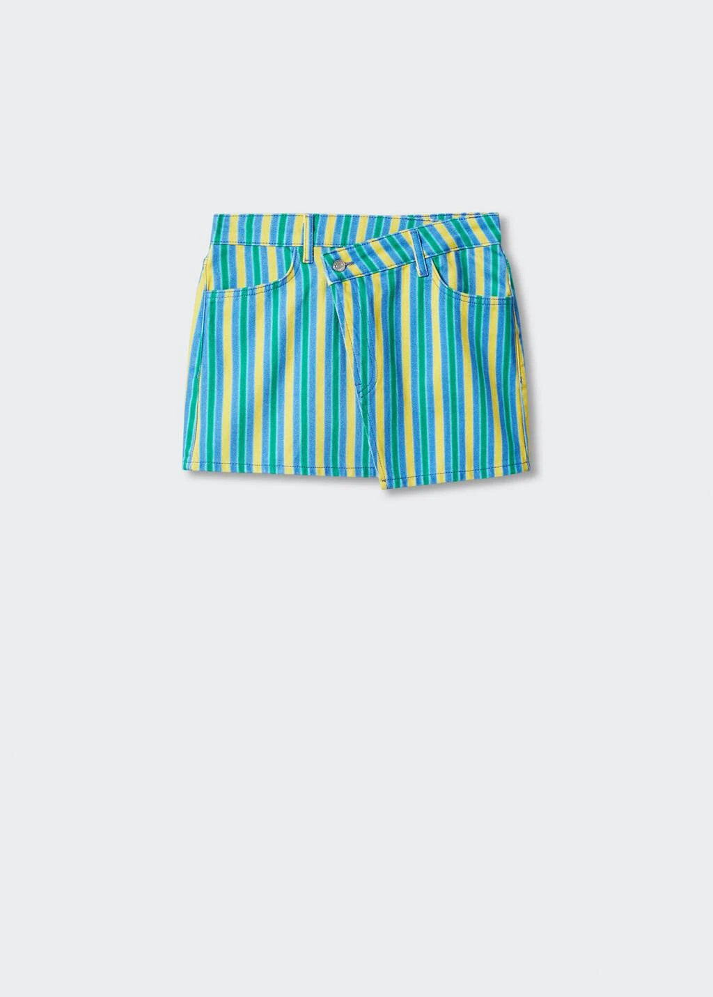 tissu en coton de style jean, asymetrique, coupe droite, coupe courte, motif raye, multicolore, taille normale, passants pour la ceinture, deux poches plaquees sur le devant, fermeture eclair avec bouton, saison des festivals, simonmiller mango : nous nous sommes associes a la marque de los angeles pour vous proposer une collection d’ete rafraichissante qui mele le meilleur des styles californien et mediterraneen. avec des tissus de qualite et des imprimes vibrants, les vetements de cette collaboration speciale debarquent dans votre dressing pour devenir vos favoris de l’ete.Composition: 100% coton
