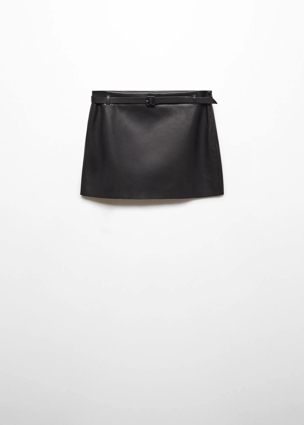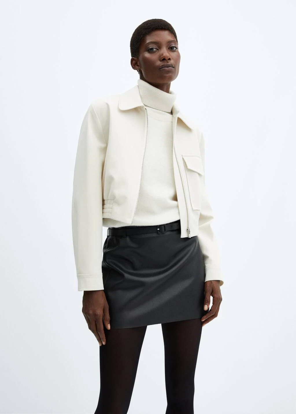 tissu fluide, similicuir, coupe courte, coupe droite, fermeture eclair laterale, ceinture avec fermeture a boucle, passants de ceinture Composition: 100% polyester. Revêtement: 100% polyurethane