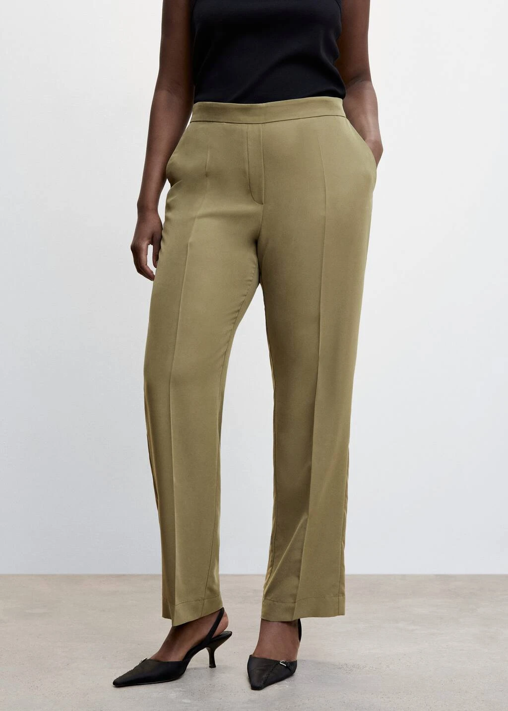 tissu en modal melange, coupe droite, taille haute, deux poches laterales, taille elastiquee, sans fermeture, pinces, total look, disponible plusCOMPOSITION:70% MODAL,30% POLYESTER. DOUBLURE:100% POLYESTER
