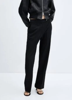 coupe longue, droit, taille basse, deux poches laterales, fermeture eclair avec bouton, passants de ceinture , disponible plusComposition: 64% polyester,34% viscose,2% elasthanne