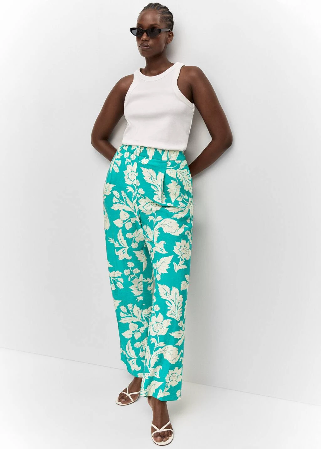 tissu fluide, coupe droite, coupe longue, taille haute, imprime tropical, passants pour la ceinture, deux poches laterales, fermeture eclair avec crochet et bouton dissimules, pincesComposition: 85% viscose,15% polyamide. Doublure: 100% coton