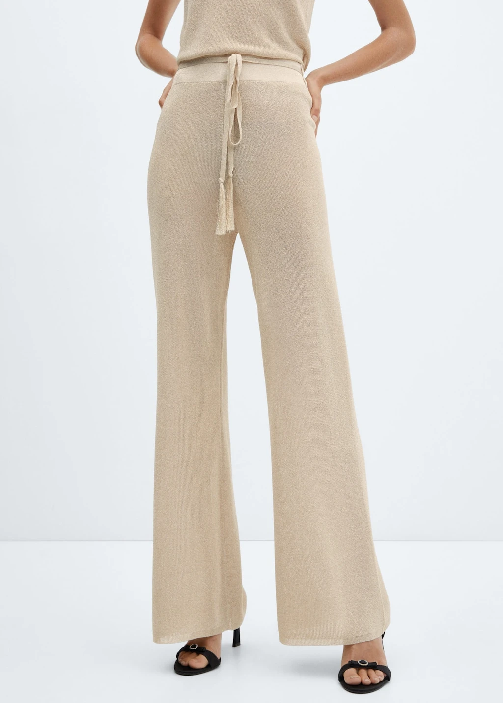 tissu en fil metallise melange, flare, coupe longue, taille haute, taille elastique, ruban a la taille avec fermeture a nœud, total lookComposition: 82% polyester,18% polyester avec revêtement de cuivre