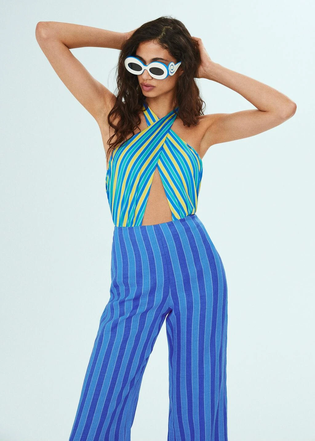 tissu 100 % lin, tissu fluide, coupe droite, motif raye, taille haute, fermeture eclair a l’arriere, simonmiller mango : nous nous sommes associes a la marque de los angeles pour vous proposer une collection d’ete rafraichissante qui mele le meilleur des styles californien et mediterraneen. avec des tissus de qualite et des imprimes vibrants, les vetements de cette collaboration speciale debarquent dans votre dressing pour devenir vos favoris de l’ete.Composition: 100% lin. Lisiere: 100% lin