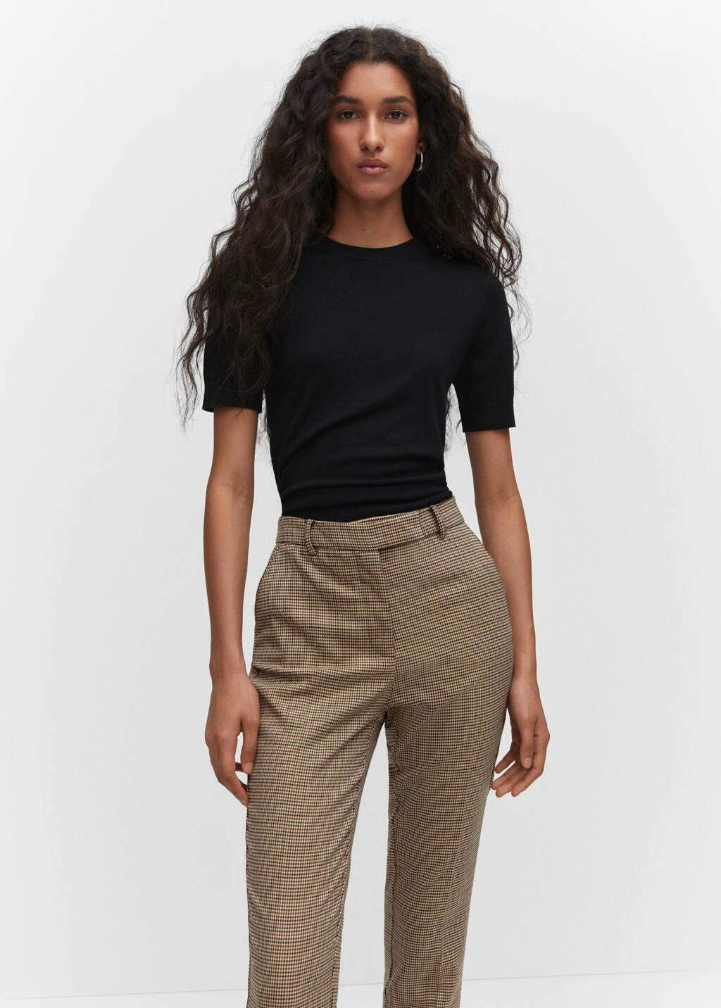 tissu de coton melange, disponible en uni ou imprime, imprime pied-de-poule, style costume, coupe skinny, style crop, taille normale, deux poches laterales, passants pour la ceinture, fermeture eclair avec crochet et bouton dissimules, disponible plus, college, looks de bureauComposition: 64% polyester,34% viscose,2% elasthanne. Doublure poches: 80% polyester,20% coton