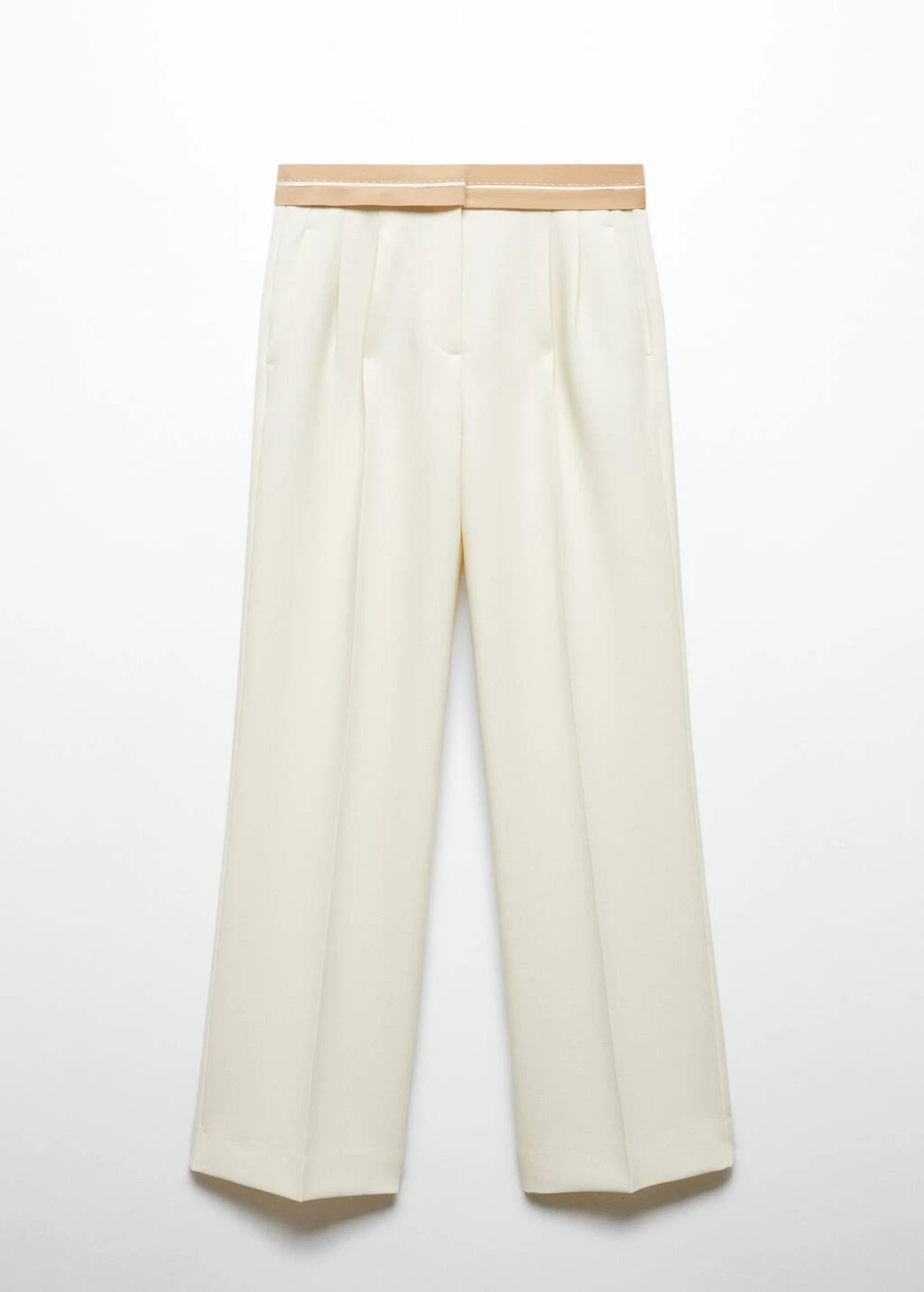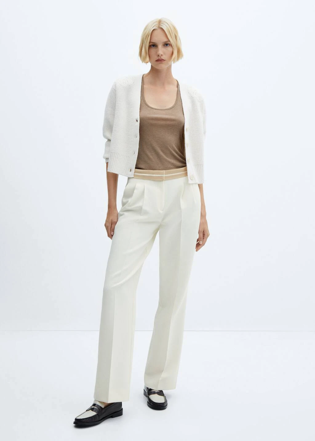 coupe longue, droit, taille normale, taille retournee, fermeture eclair avec crochet et bouton dissimules, deux poches laterales, pincesComposition: 73% polyester,21% viscose,6% elasthanne