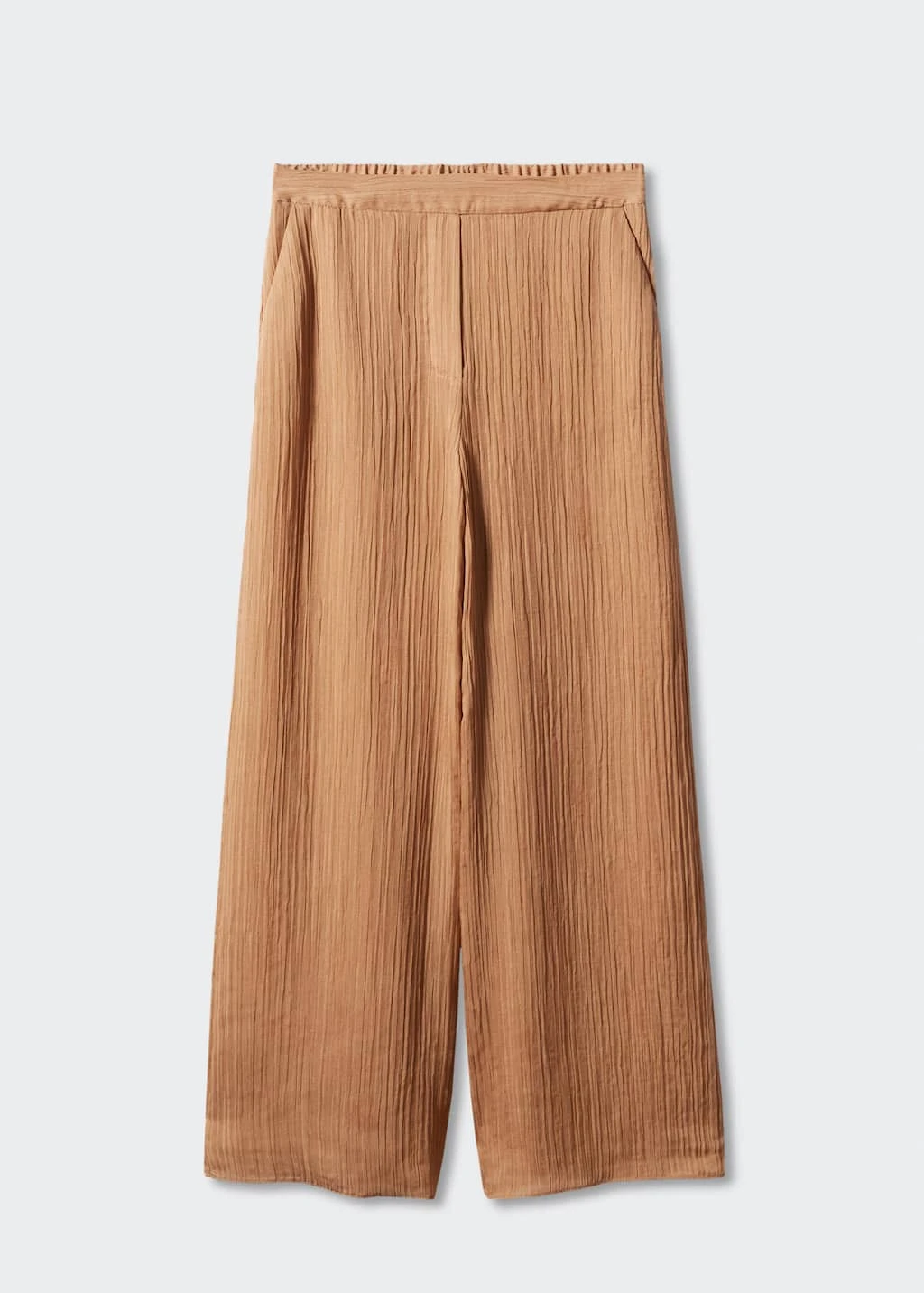 tissu fluide, design plisse, coupe wideleg, coupe longue, deux poches laterales, taille elastiquee, sans fermeture, total lookComposition: 60% polyester,40% polyester recyclé. Doublure: 100% polyester
