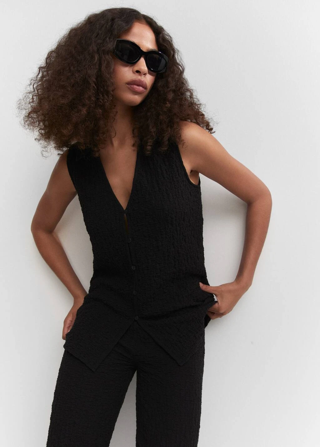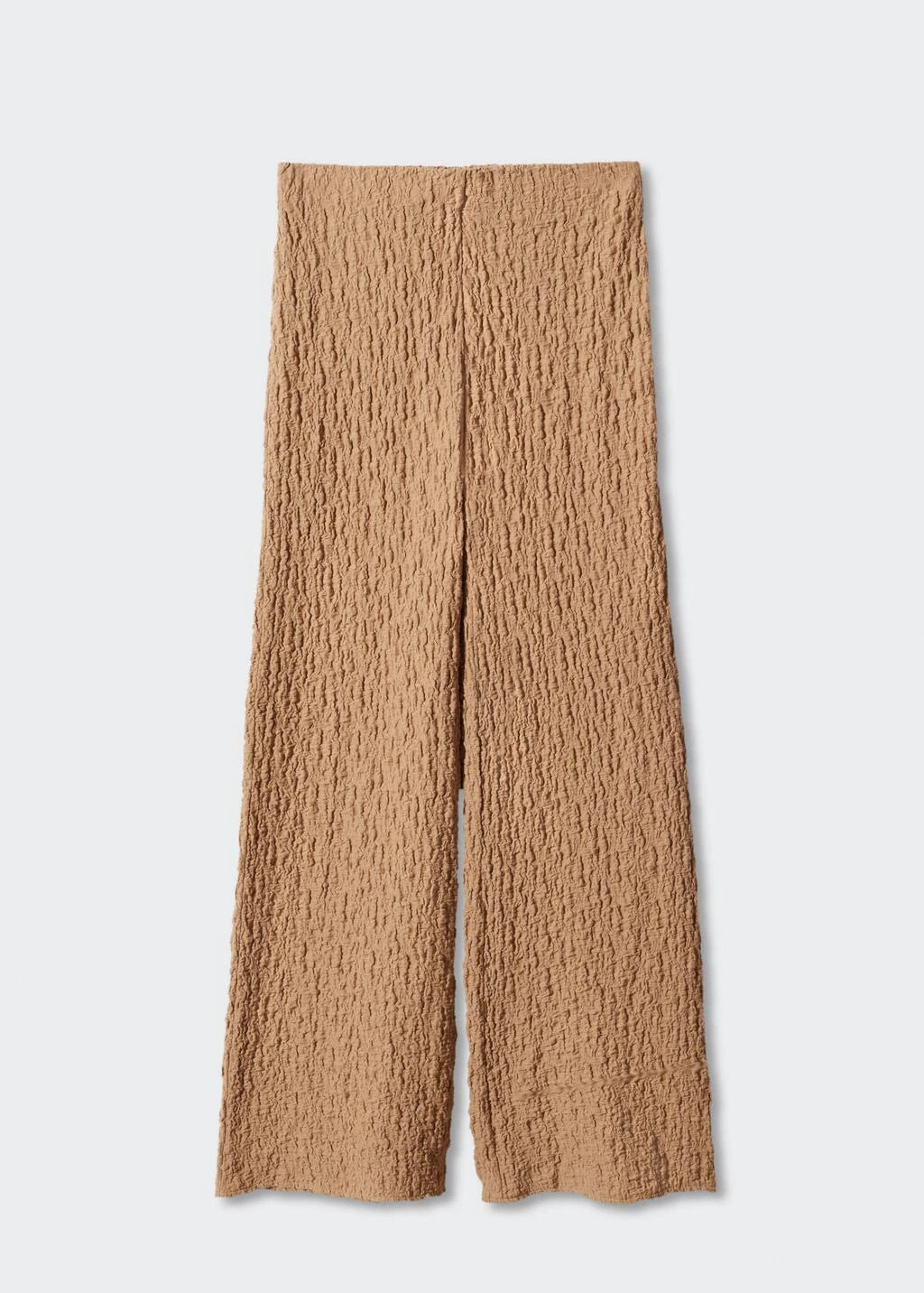 tissu de coton melange, tissu texture, coupe wideleg, coupe longue, taille haute, taille elastiquee, total lookComposition: 61% coton,37% polyamide,2% elasthanne