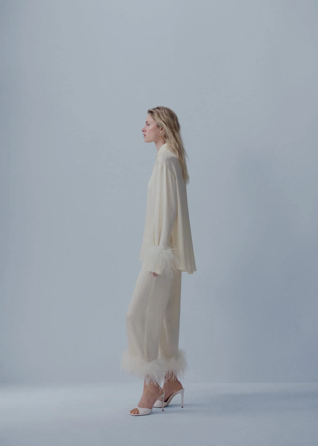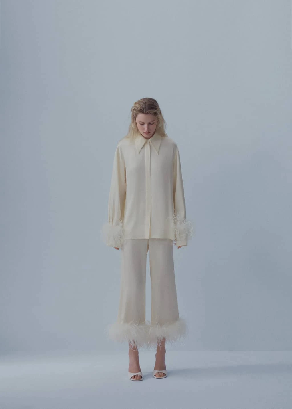 Pantalons Satiné Détail Plumes