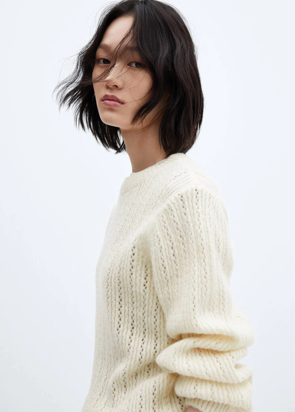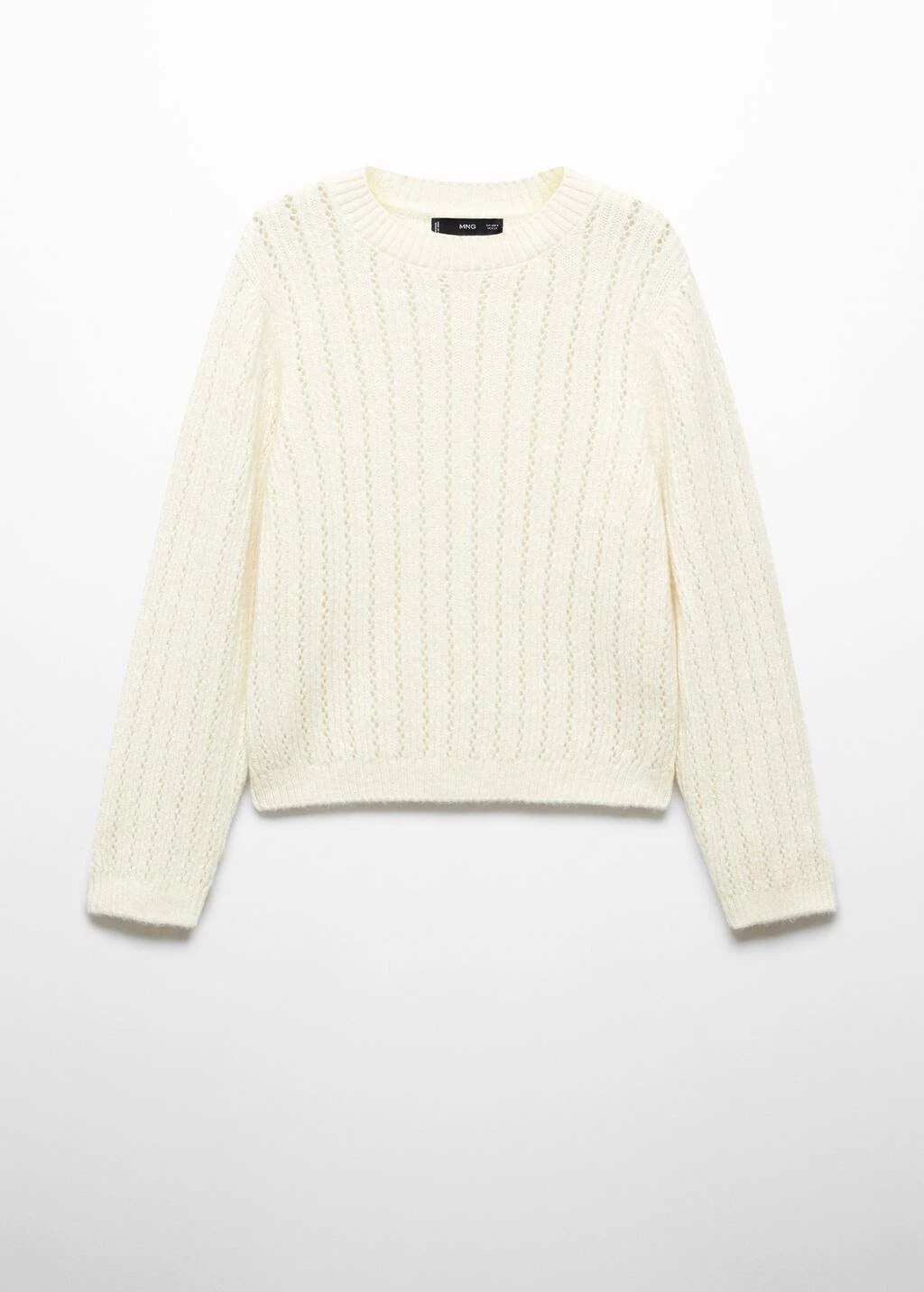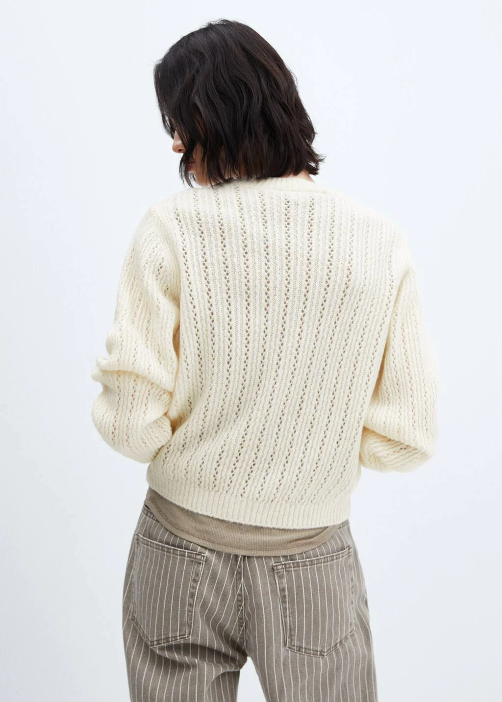 tissu en maille, coupe droite, col rond, manches longues, detail ajoure, sans fermetureComposition: 75% acrylique,25% polyester
