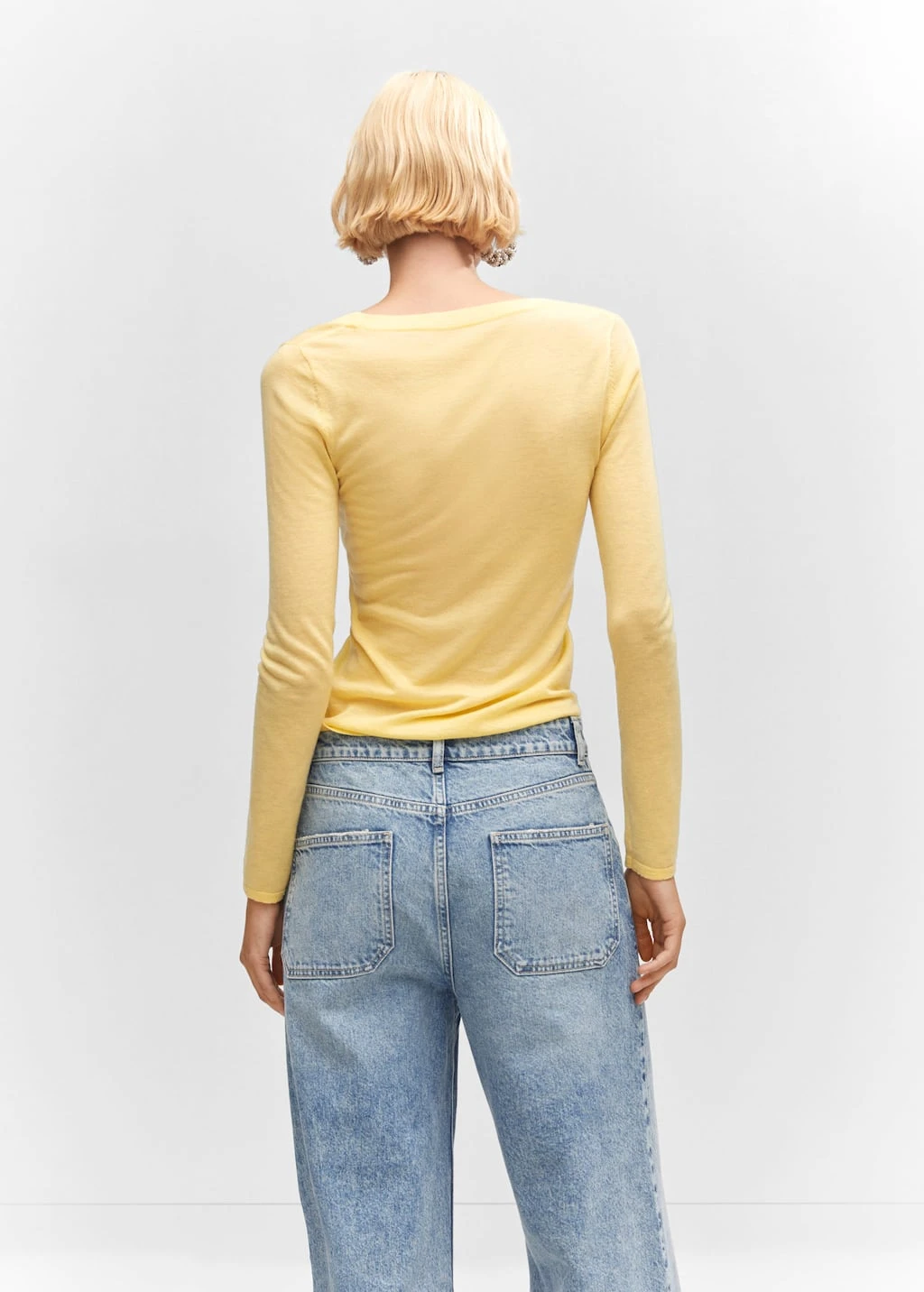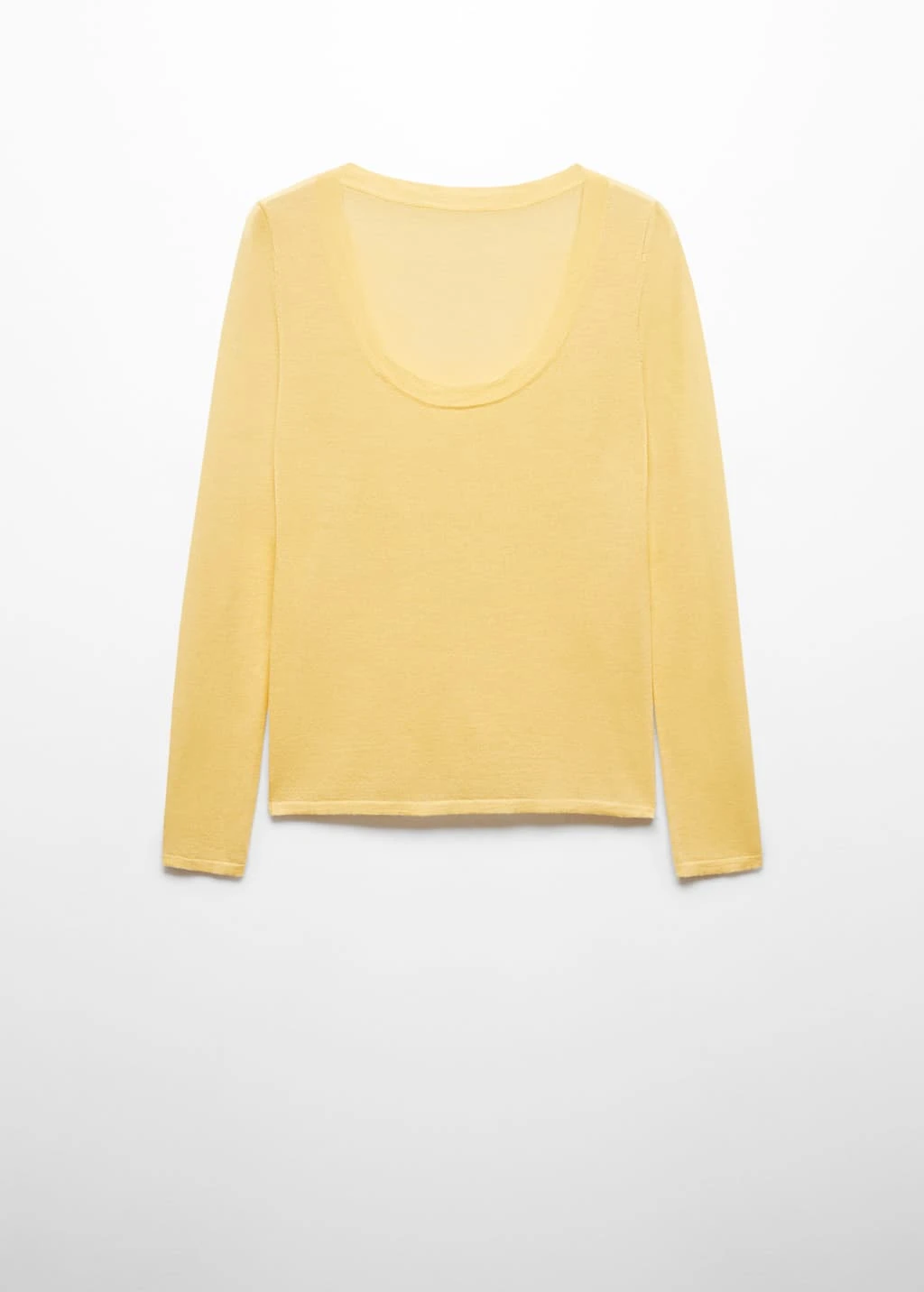 100 % laine, tissu en maille fine, ajuste, col echancre, manches longues, sans fermetureComposition: 100% laine