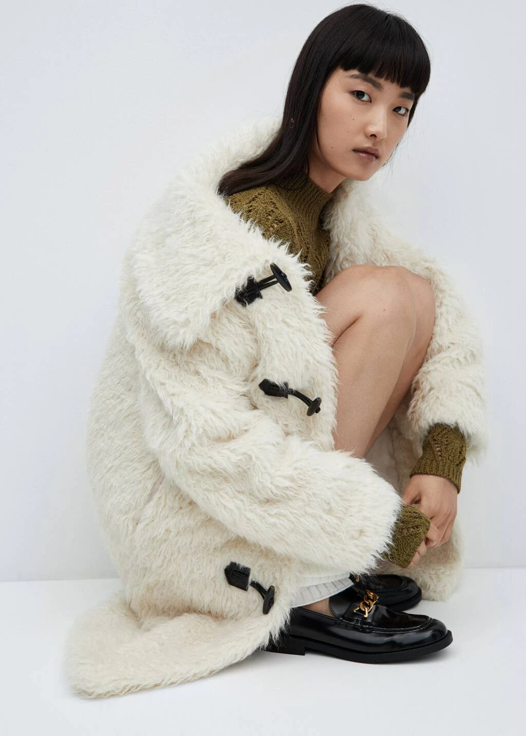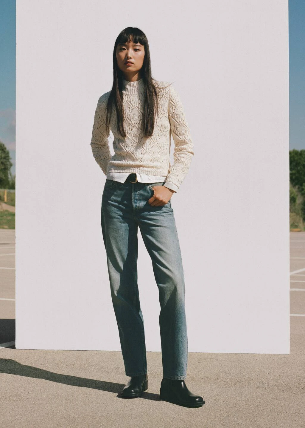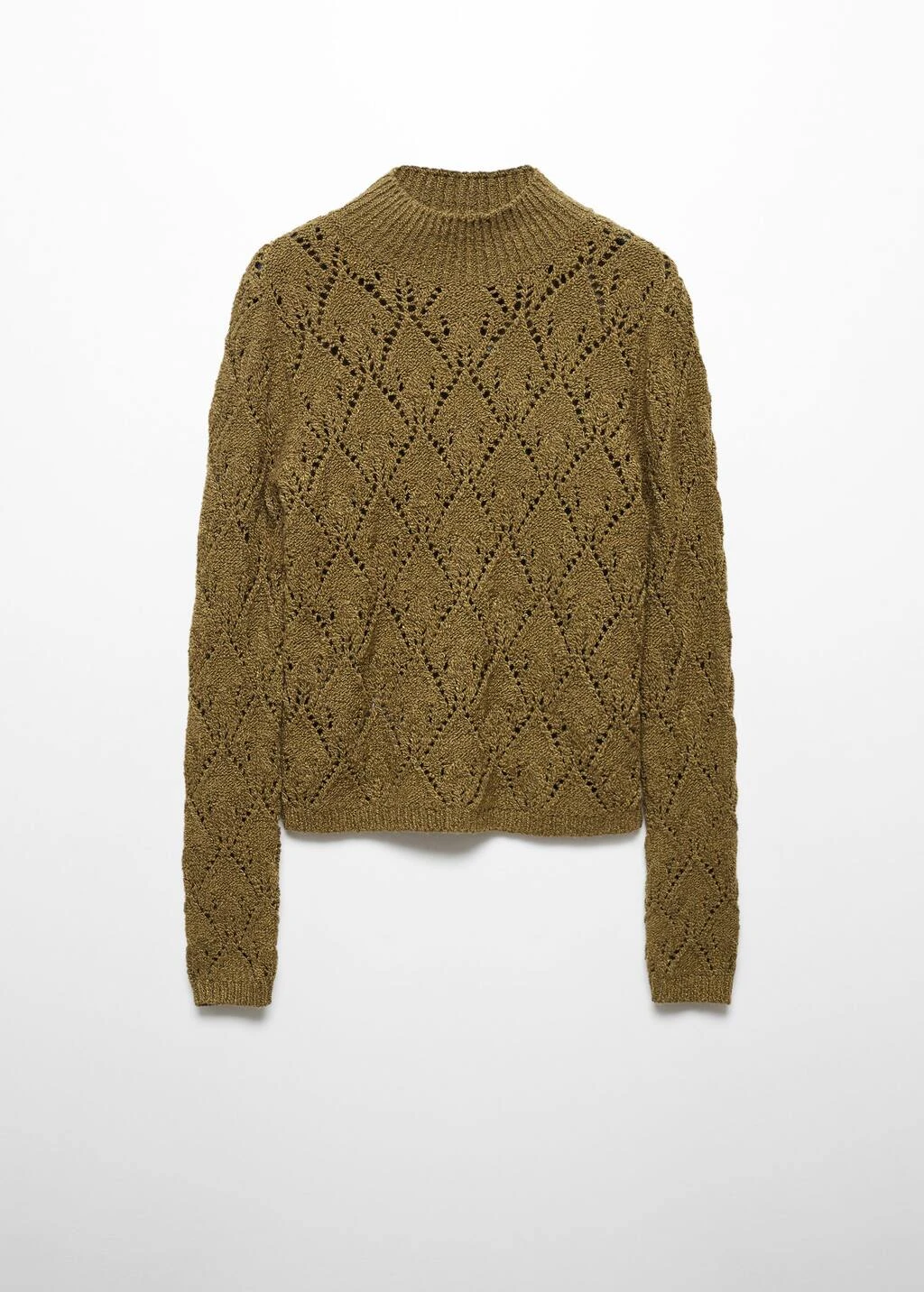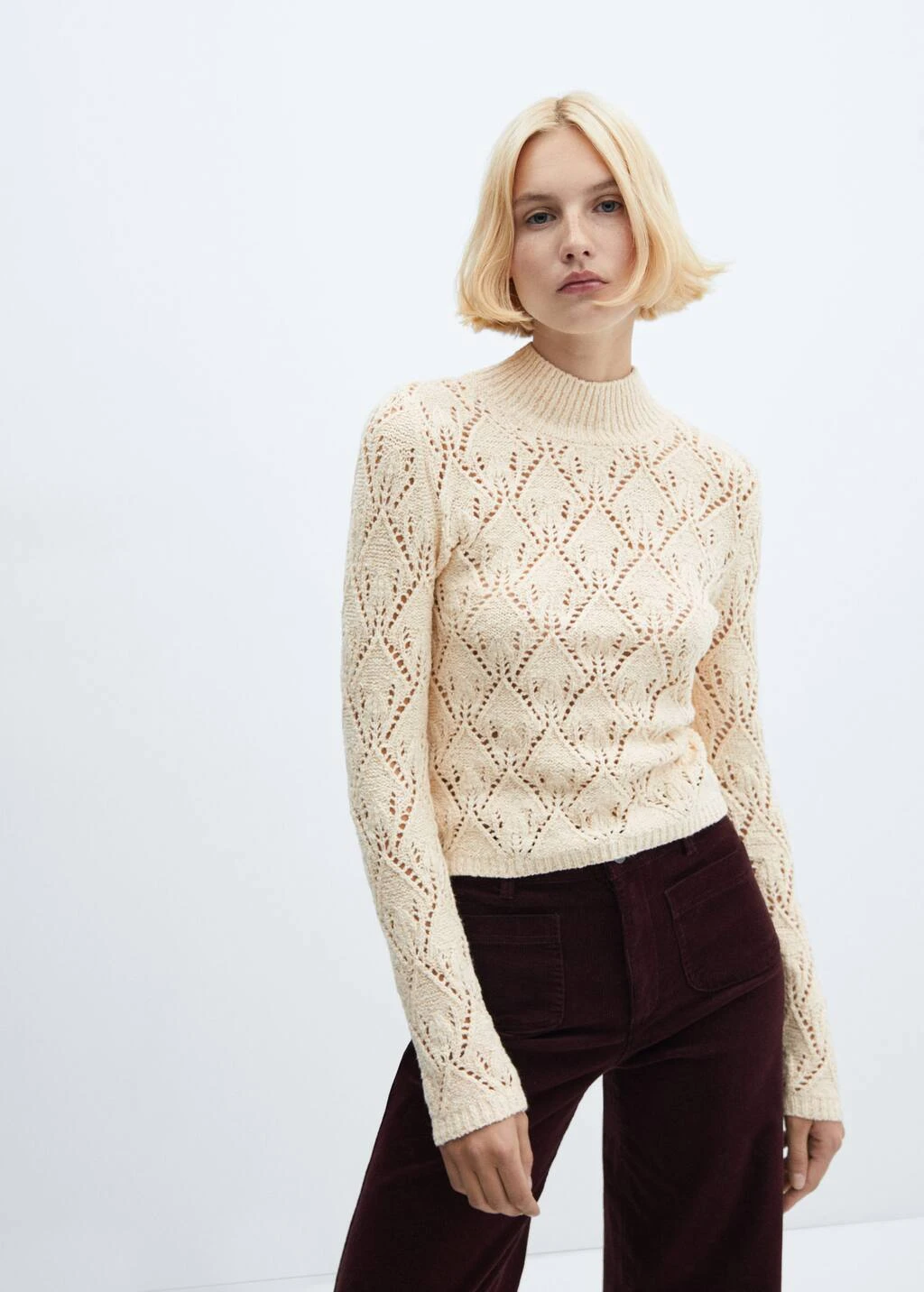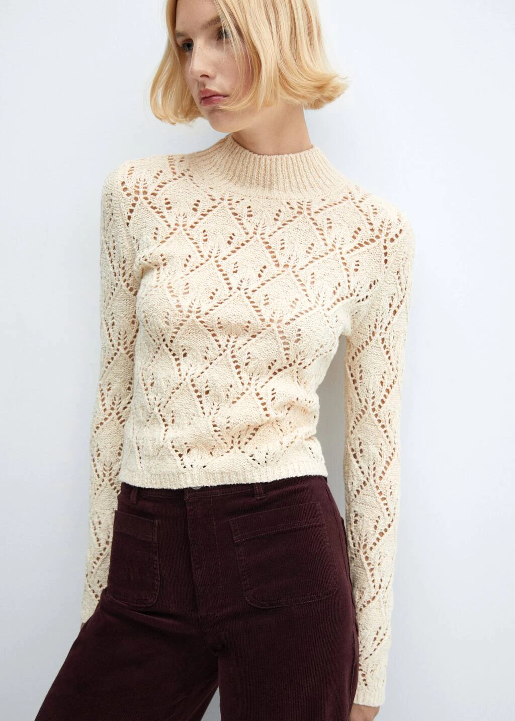 tissu de coton melange, tissu en grosse maille, ajoure, droit, col montant, manches longues, sans fermeture, bords coteles au niveau du col, des manches et sur le basComposition: 55% coton,34% acrylique,11% polyester