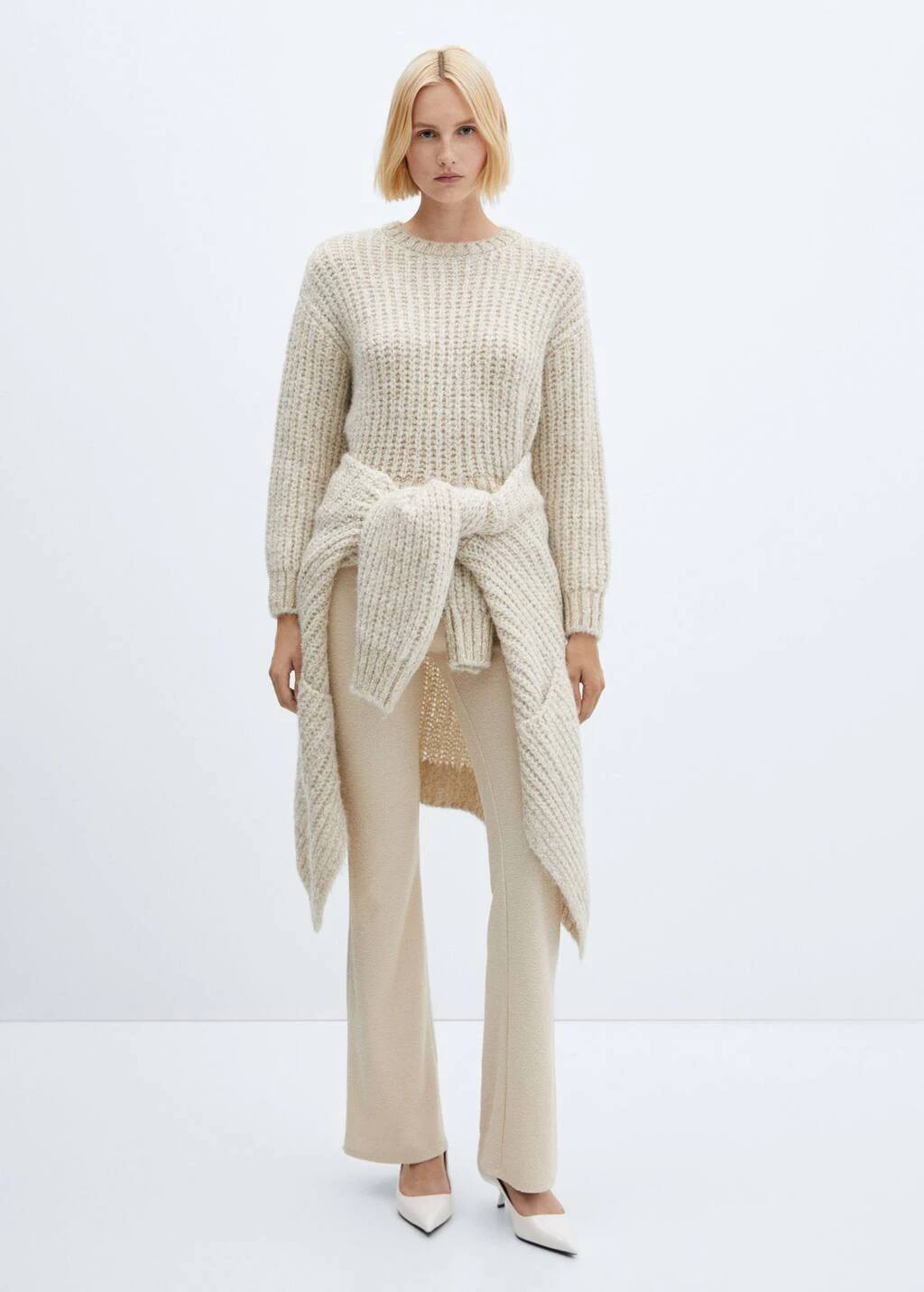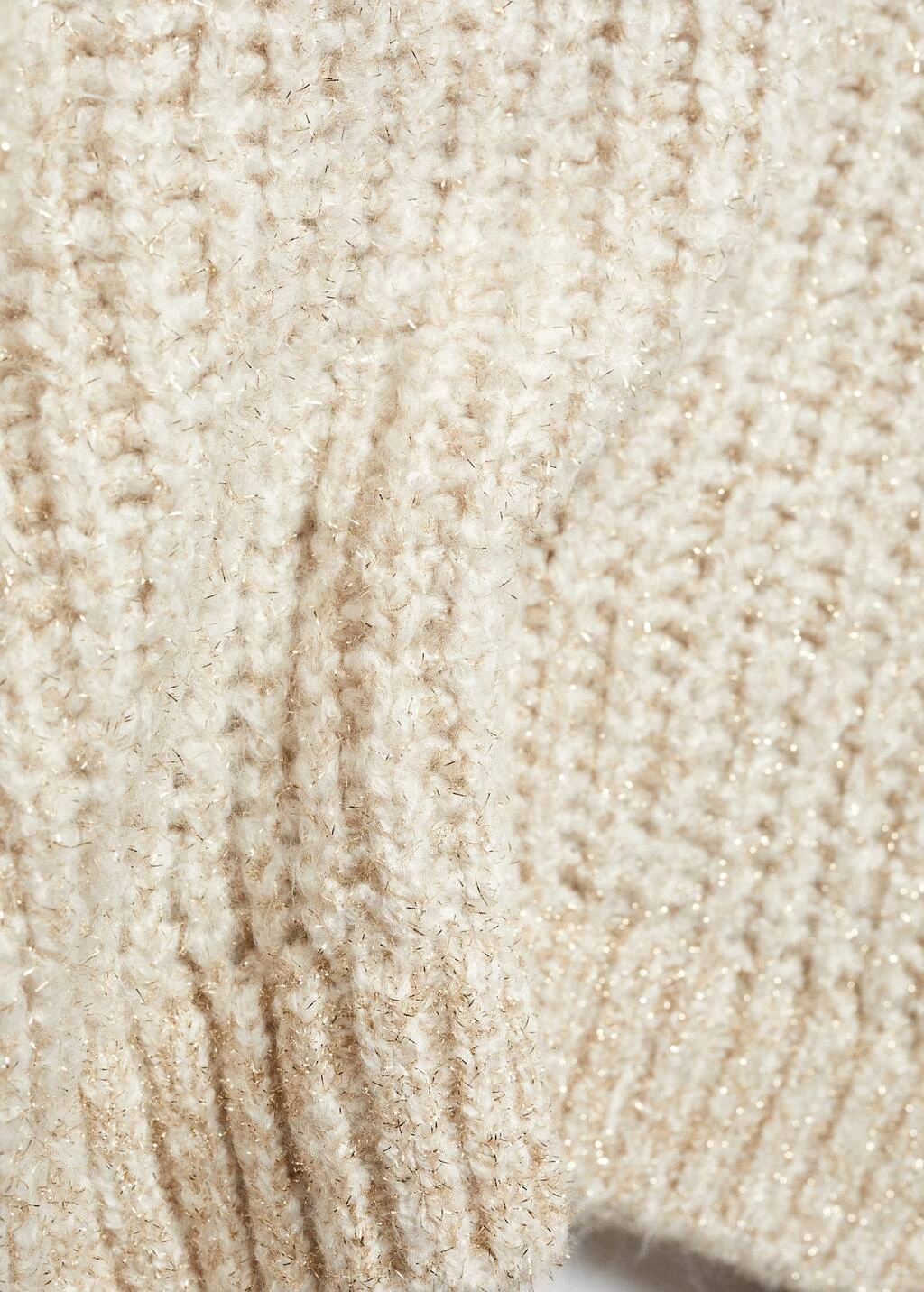 tissu en grosse maille, coupe droite, col rond, manches longues, sans fermeture, details en lurex, bords coteles au niveau du col, des manches et sur le bas.Composition: 60% acrylique,24% polyester,16% polyester avec revêtement de aluminium