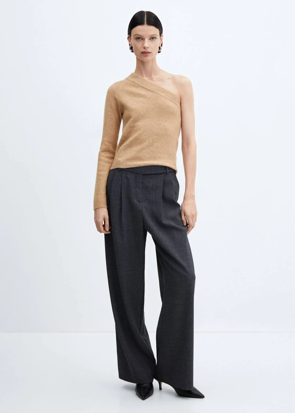 maille moyenne, coupe asymetrique, coupe droite, col asymetrique, manches longues, bords cotelesComposition: 47% polyester,46% acrylique,4% laine,3% elasthanne