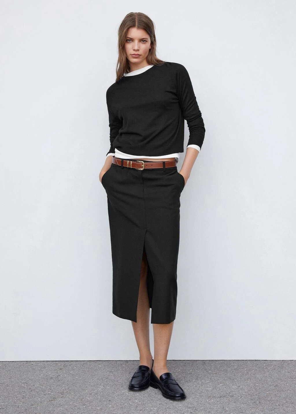 tissu en maille fine, coupe droite, col rond, manches longues, bords coteles, disponible plusComposition: 38% viscose,34% polyester,22% polyamide,6% cashmere