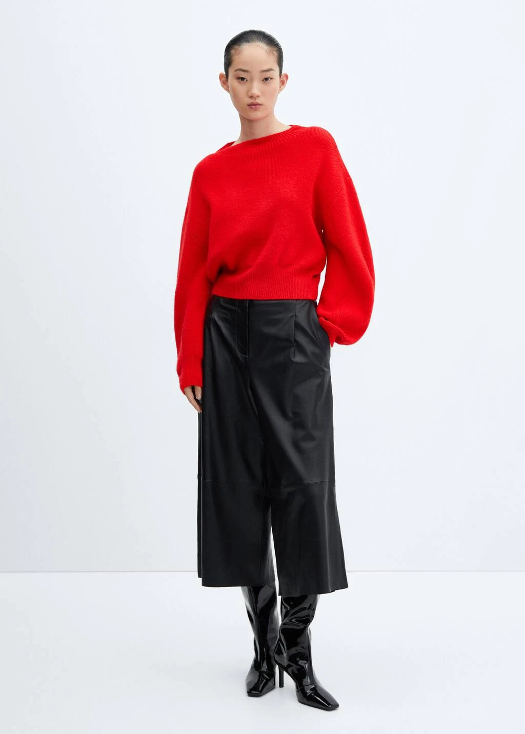 tissu en maille fine, droit, col bateau, manches longues bouffantes, bas elastique, sans fermetureComposition: 84% acrylique,11% polyamide,5% polyester