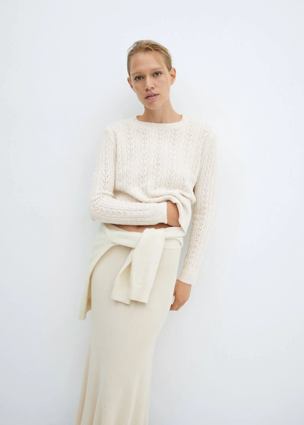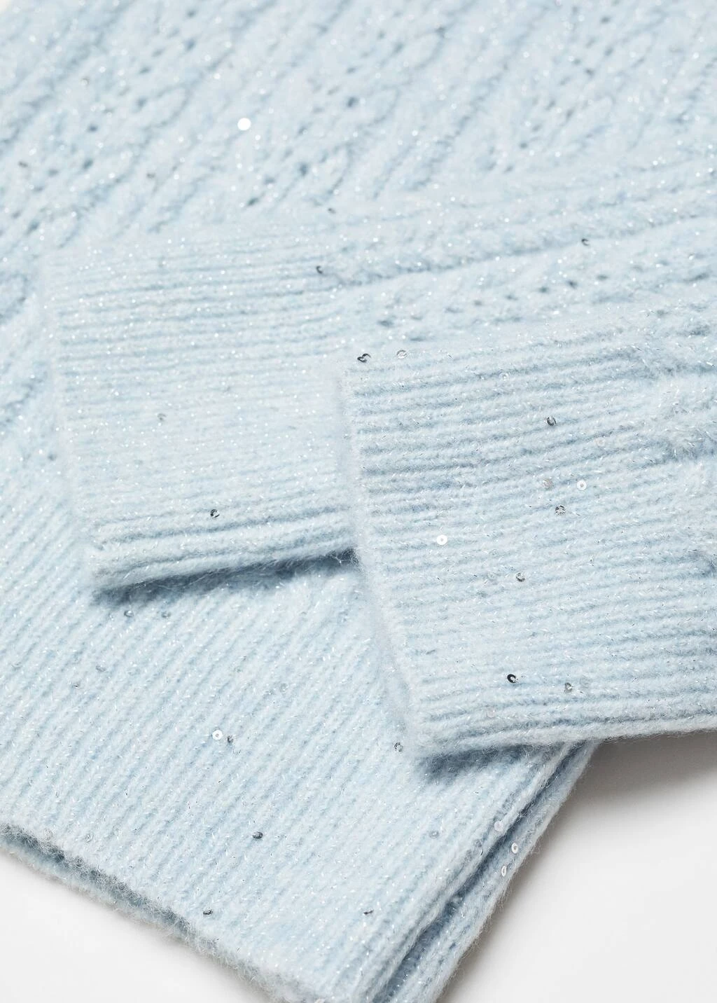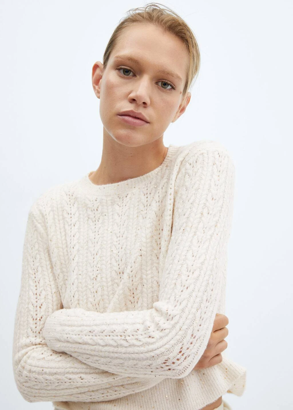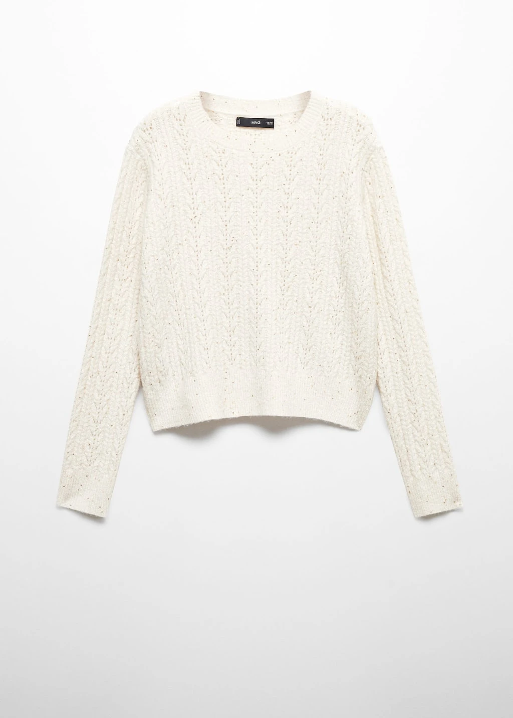 tissu de laine melange, tissu en grosse maille, coupe droite, col rond, manches longues, details en lurex, broderie a sequins, bords coteles au niveau du col, des manches et sur le bas.Composition: 34% acrylique,29% polyester,24% polyamide,6% laine,4% polyester avec revêtement de cuivre,3% elasthanne