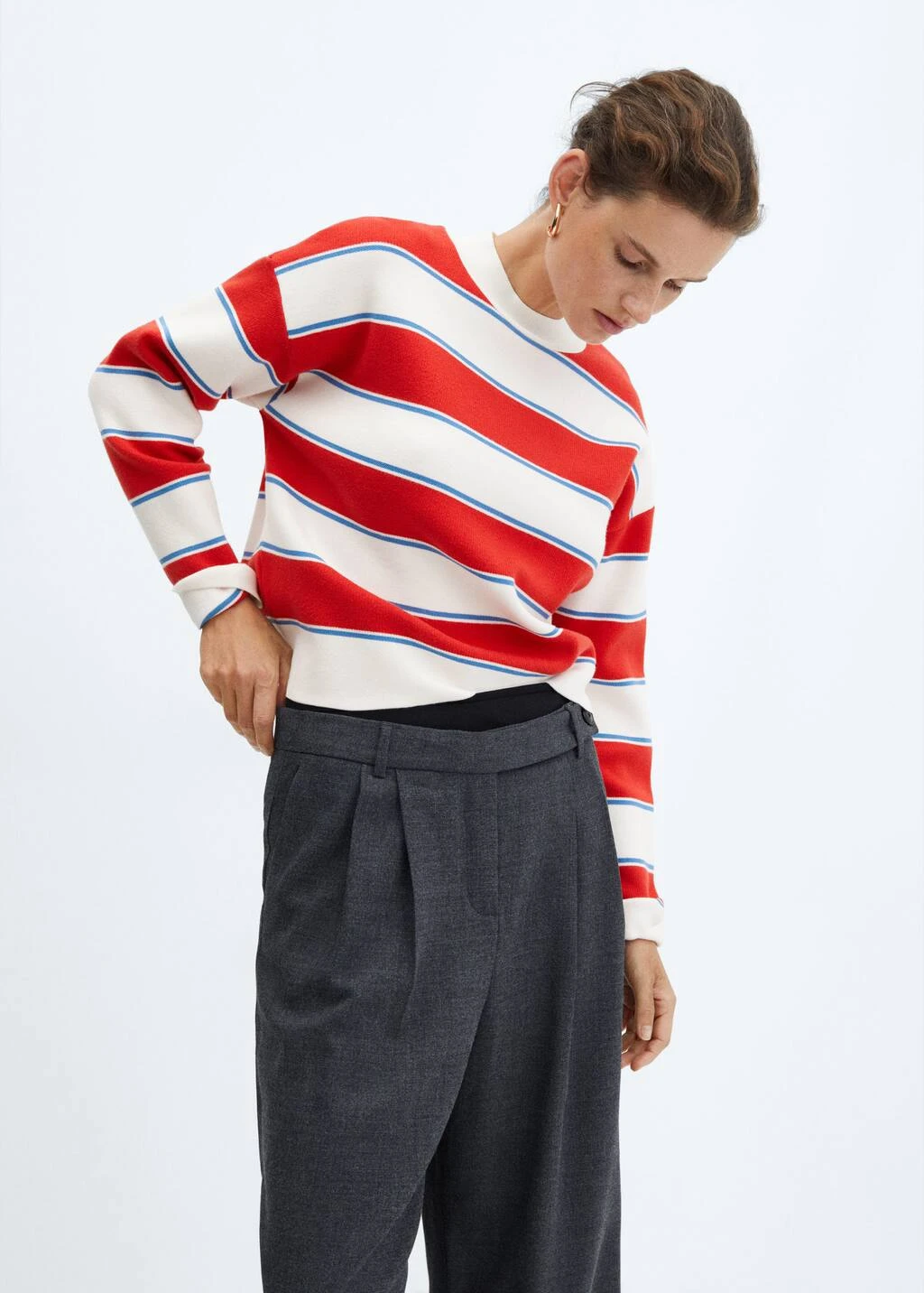 tissu en maille fluide, droit, longueur normale, motif raye, col montant, manches longues, sans fermetureComposition: 51% polyester,35% viscose,14% polyamide