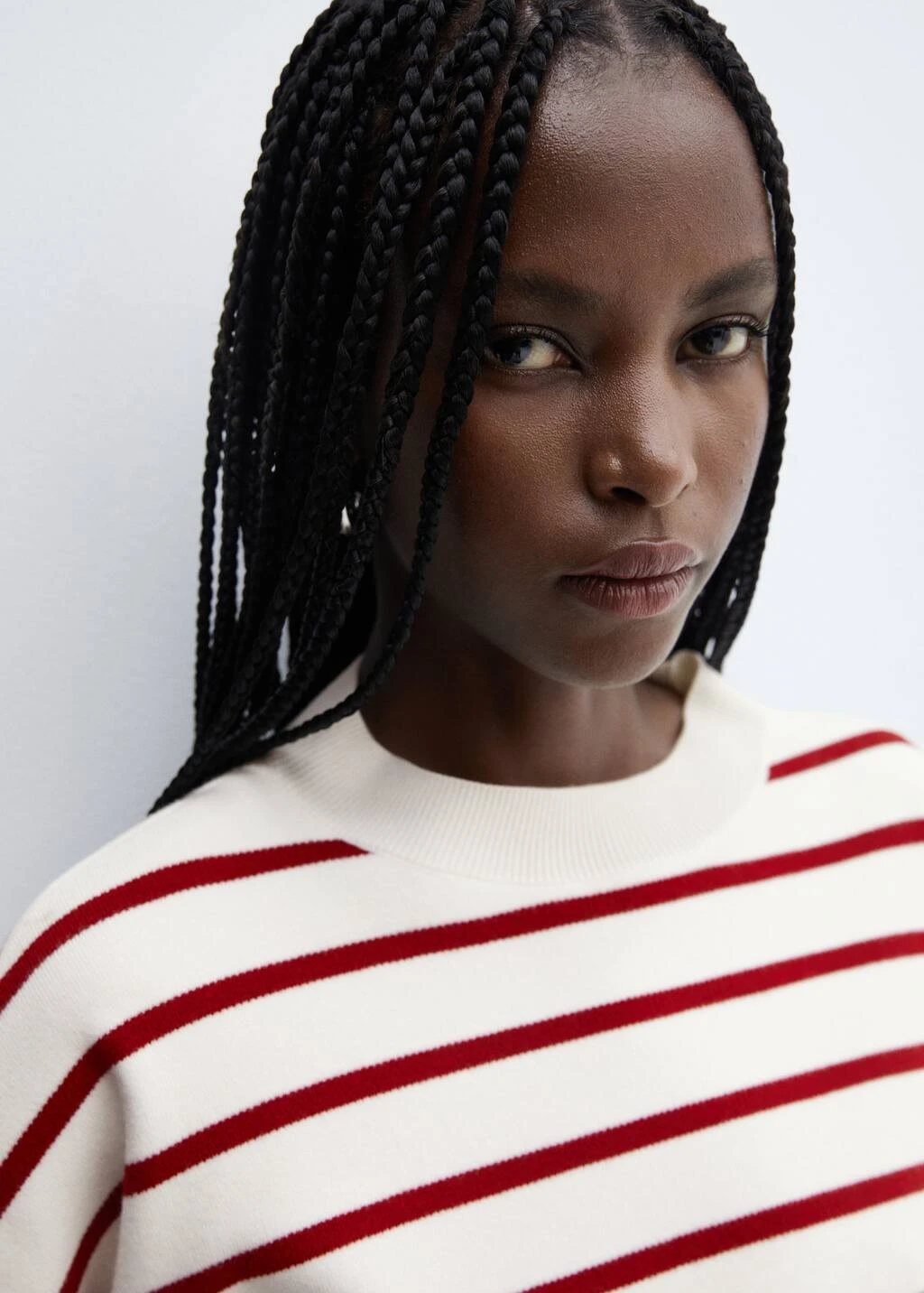 tissu en maille, maille moyenne, imprime rayures, coupe droite, col montant, manches longuesComposition: 50% viscose,28% polyester,22% polyamide