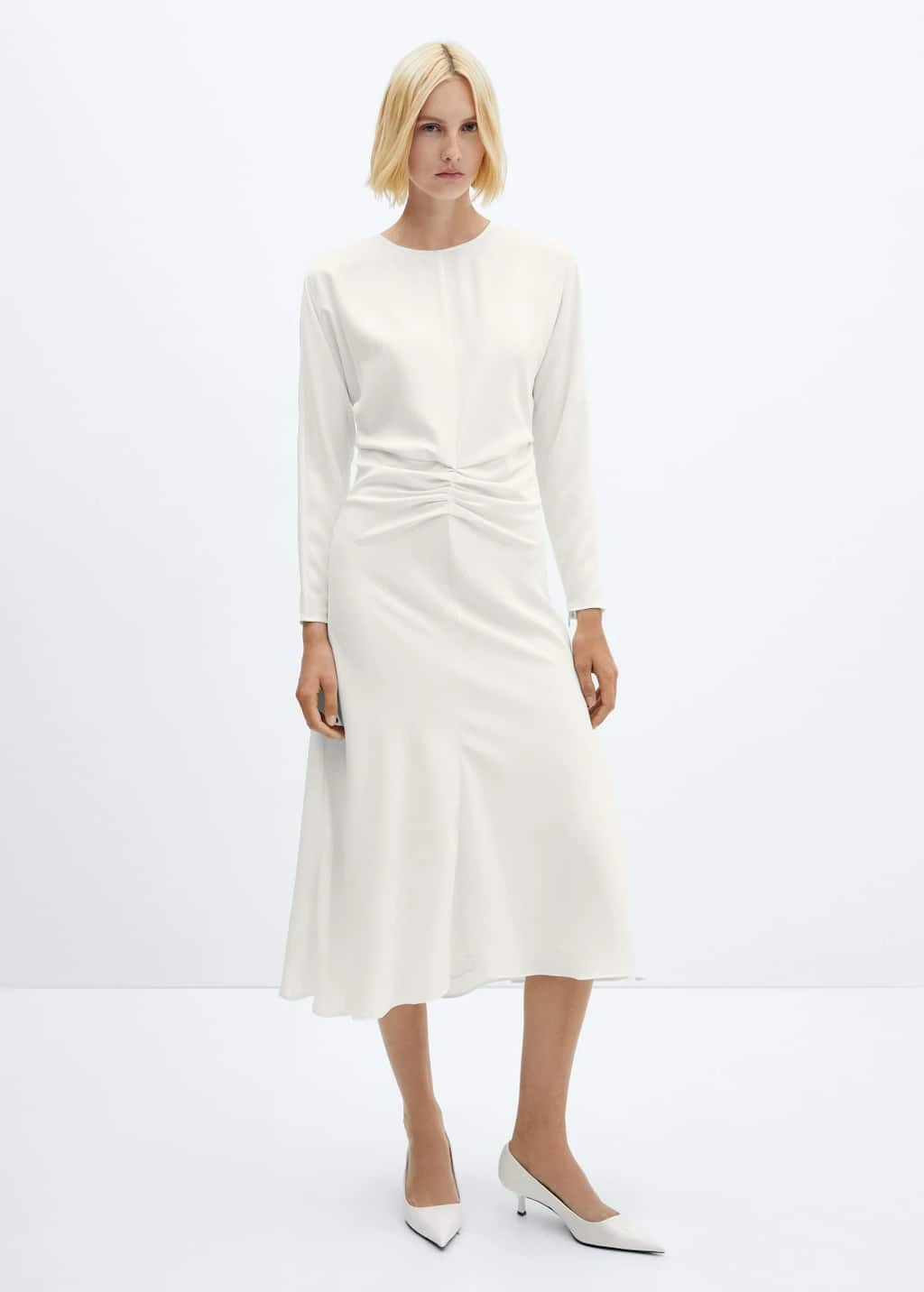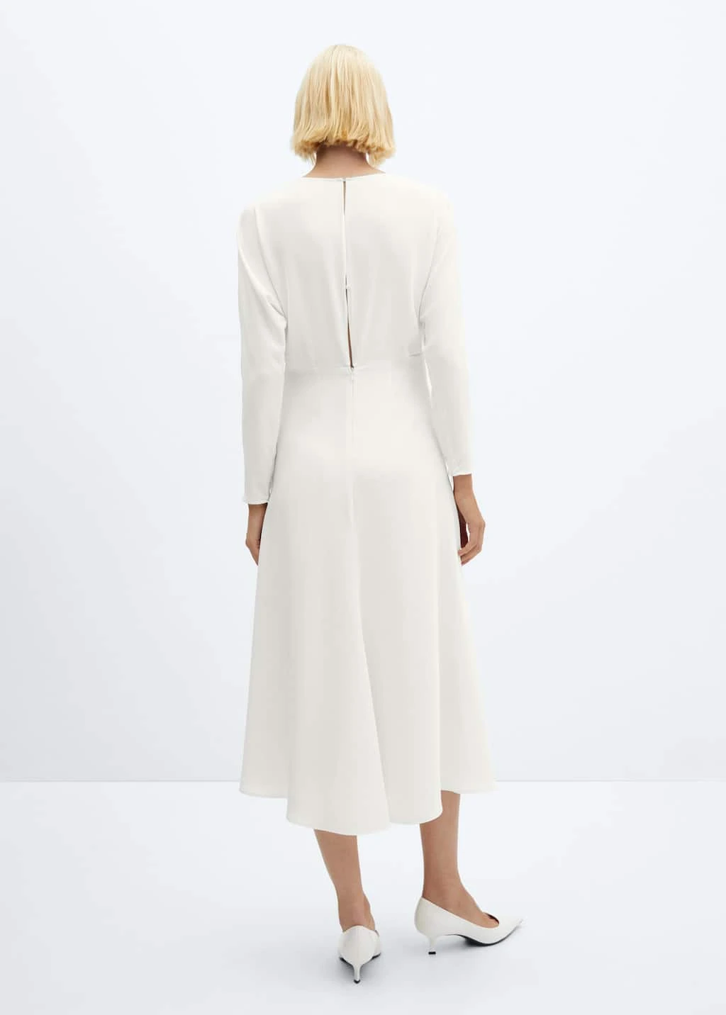 tissu fluide, coupe midi, evase, col rond, manches longues, zip, fermeture boutonnee a l’arriere, fermeture eclair invisible a l’arriere, detail fronce, doublure.Composition: 100% polyester. Doublure: 100% polyester