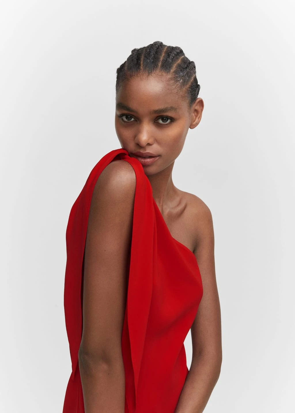 tissu fluide, coupe asymetrique, droit, coupe longue, col asymetrique, bretelle large, sans manches, fermeture a nœud reglable, fente laterale, collection fetes et ceremoniesComposition: 100% viscose