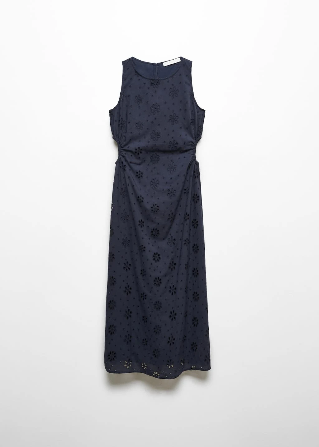 tissu 100 % coton, tissu a broderies anglaises, droit, coupe longue, col rond, bretelles larges, sans manches, fermeture eclair a l’arriere, details brodes, details ajoures, fentes laterales, doublureComposition: 100% coton. Doublure: 100% coton