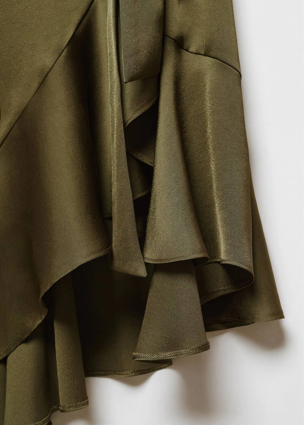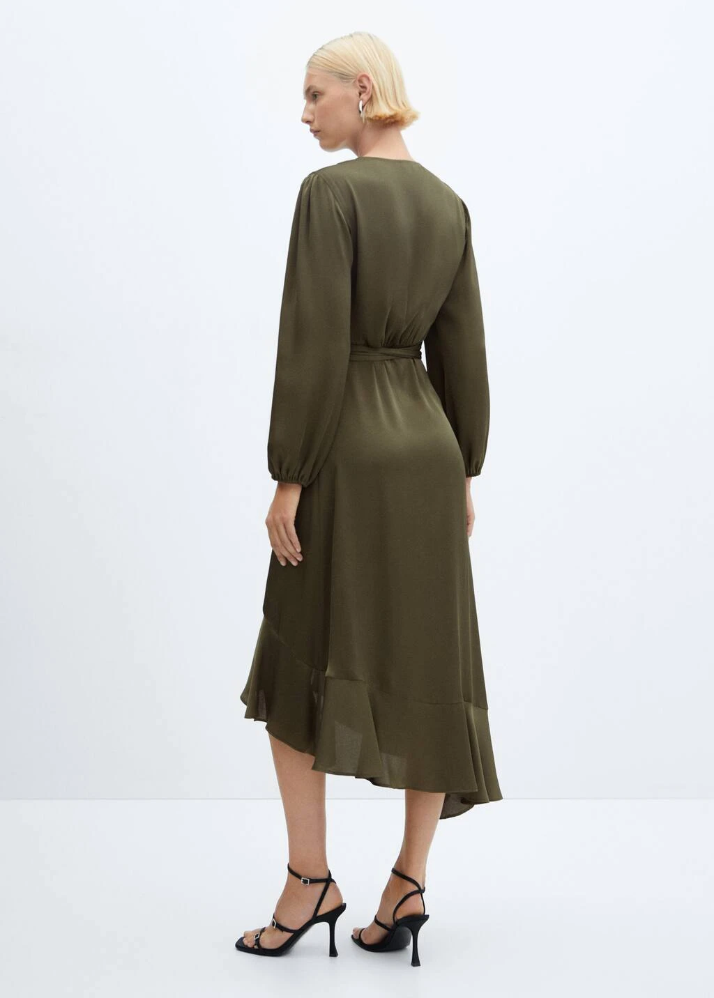 tissu fluide, effet satine, coupe midi, croise, evase, col en v, manches longues avec poignets elastiques, ruban a la taille avec fermeture a nœud, disponible plusComposition: 100% polyester. Ceinture: 100% polyester