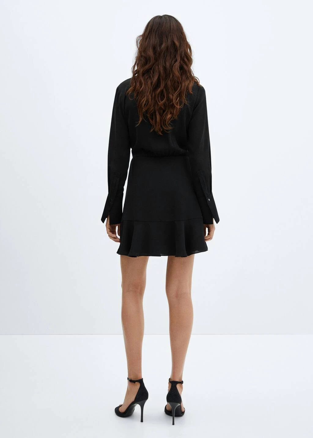 tissu fluide, evase, coupe courte, croise, col en v avec rabat, manches longues avec poignets boutonnes, ruban a la taille avec fermeture a nœud, detail volante, doublure.Composition: 100% polyester. Doublure: 100% polyester. Applique: 100% polyester. Lisiere: 100% polyester