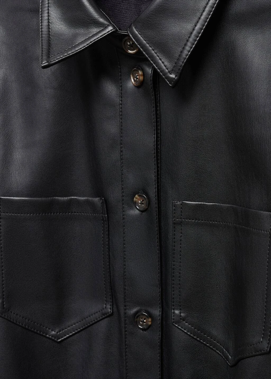 tissu fluide, similicuir, coupe courte, coupe droite, col chemise, manches courtes, deux poches plaquees sur la poitrine, fermeture a boutons sur le devant, ceinture amovibleComposition: 100% polyester. Revêtement: 100% polyurethane