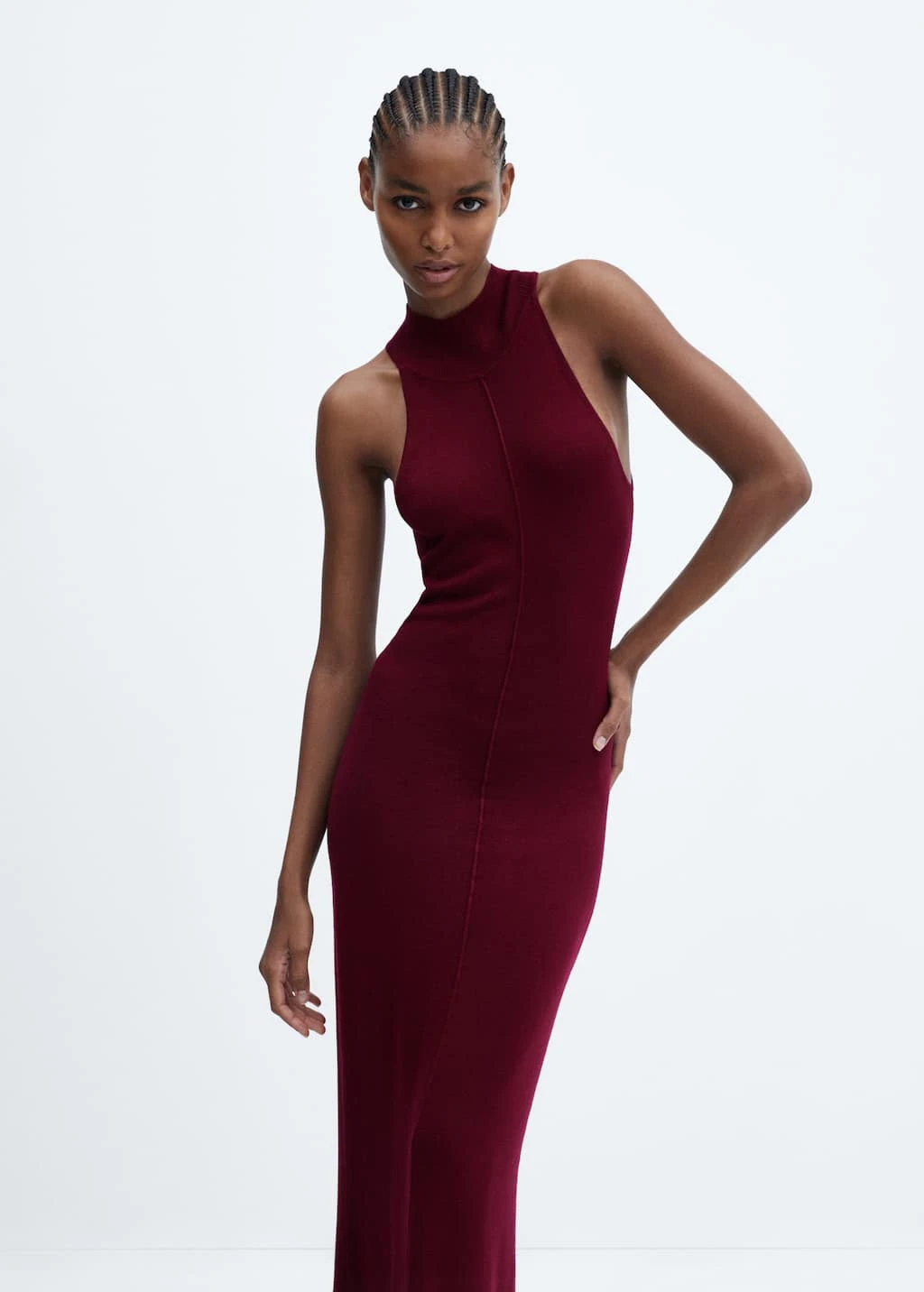 tissu en maille fine, coupe cintree, coupe midi, emmanchures americaines, sans manches, sans fermeture, bas fendu a l’arriere, sans doublure interieure, total lookComposition: 80% viscose,20% polyamide