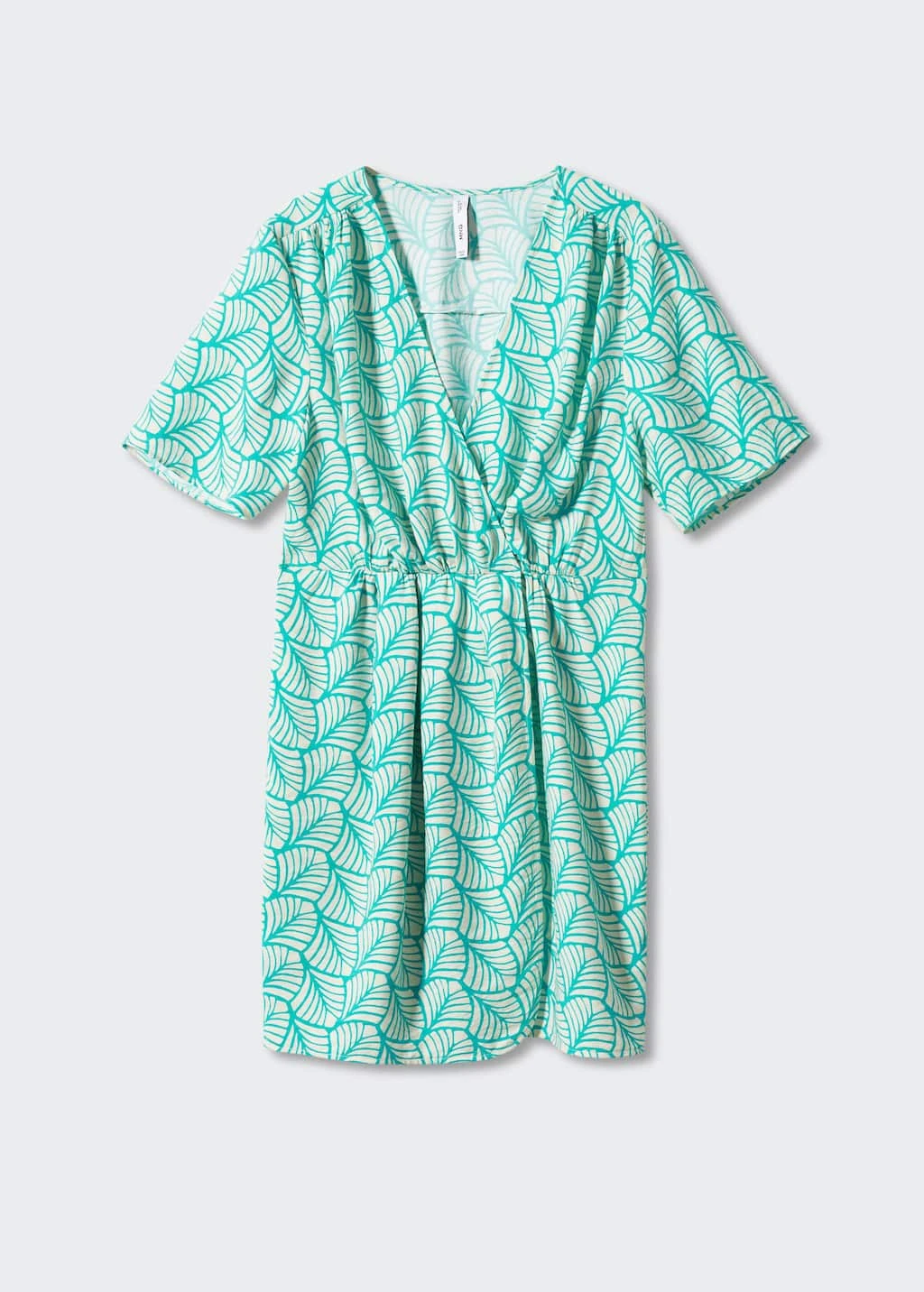 tissu fluide, croise, coupe courte, imprime, col croise, manches courtes, taille elastiquee, sans fermetureComposition: 80% viscose,20% polyamide