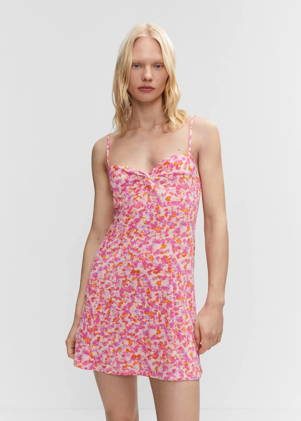 tissu fluide, coupe droite, coupe courte, imprime floral, encolure en cœur, bretelles fines, sans fermetureComposition: 59% polyester recyclé,36% polyester,5% elasthanne