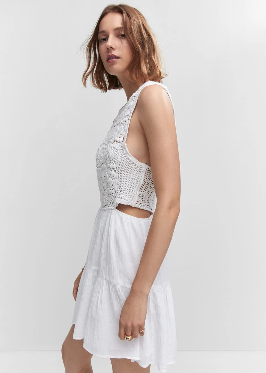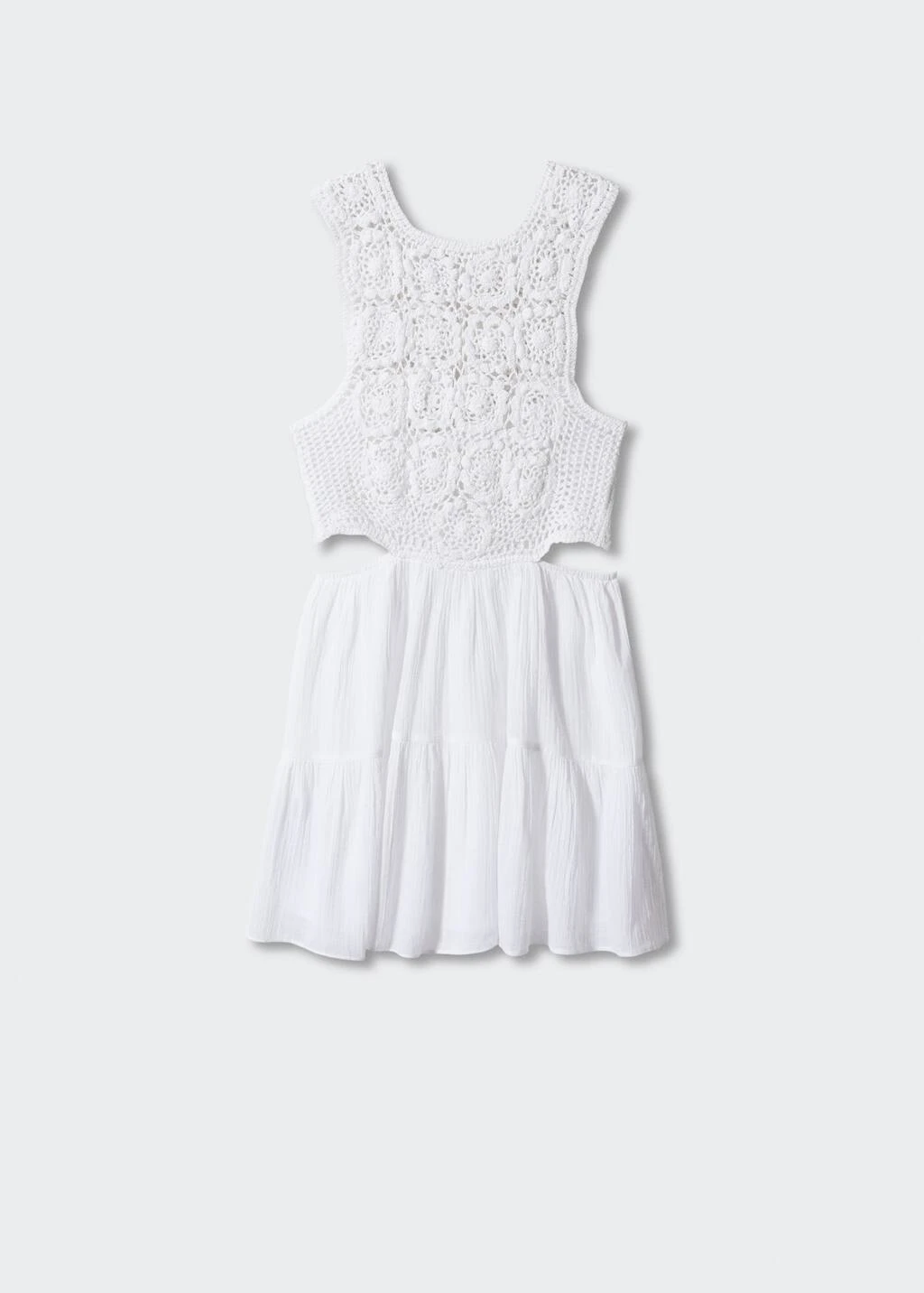 tissu 100 % coton, tissu en crochet, evase, coupe courte, col rond, bretelles larges, jupe plissee, sans fermeture, fentes laterales, doublureComposition: 100% coton. Doublure: 100% coton. Corps: 100% coton